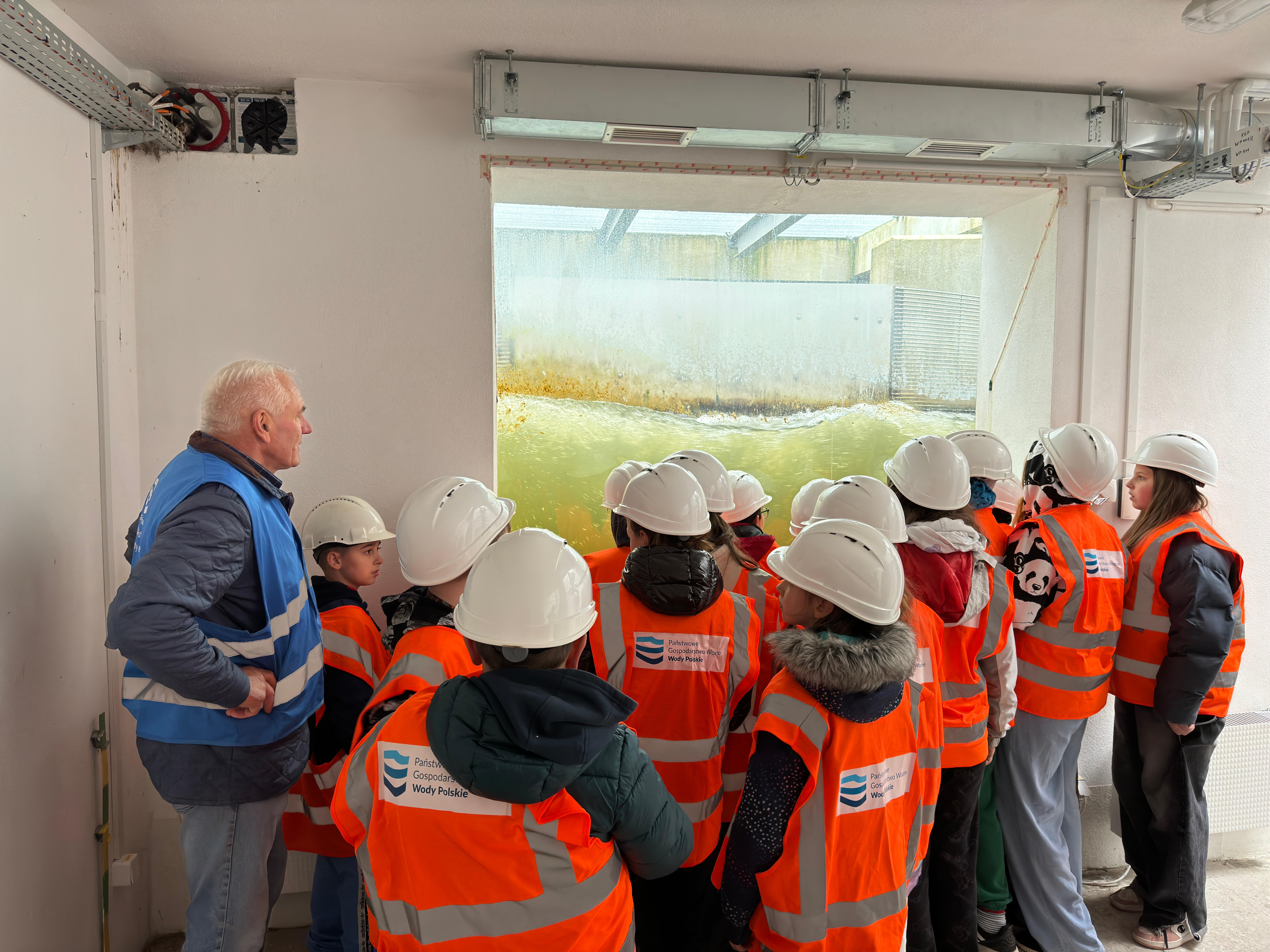 Później przyszła pora na weryfikację zgromadzonej wiedzy w praktyce. Aktywni na własne oczy zobaczyli trzyprzęsłowy jaz klapowy i śluzę, przez którą przepłynęła jednostka Wód Polskich. Dzieci przekonały się też, jak działa przepławka. Stopień wodny Malczyce posiada trzy konstrukcje, umożliwiające rybom swobodną migrację. Jedną z przepławek jest bystrotok kaskadowy, zbudowany z materiałów naturalnych: głazów i narzutu kamiennego. Występuje tutaj również rampa migracyjna dla zwierząt lądowo-wodnych. Następnie, w odrębnym pomieszczeniu, uczniowie mogli przez specjalną szybę zajrzeć pod powierzchnię wody i obserwować pływające tam ryby.