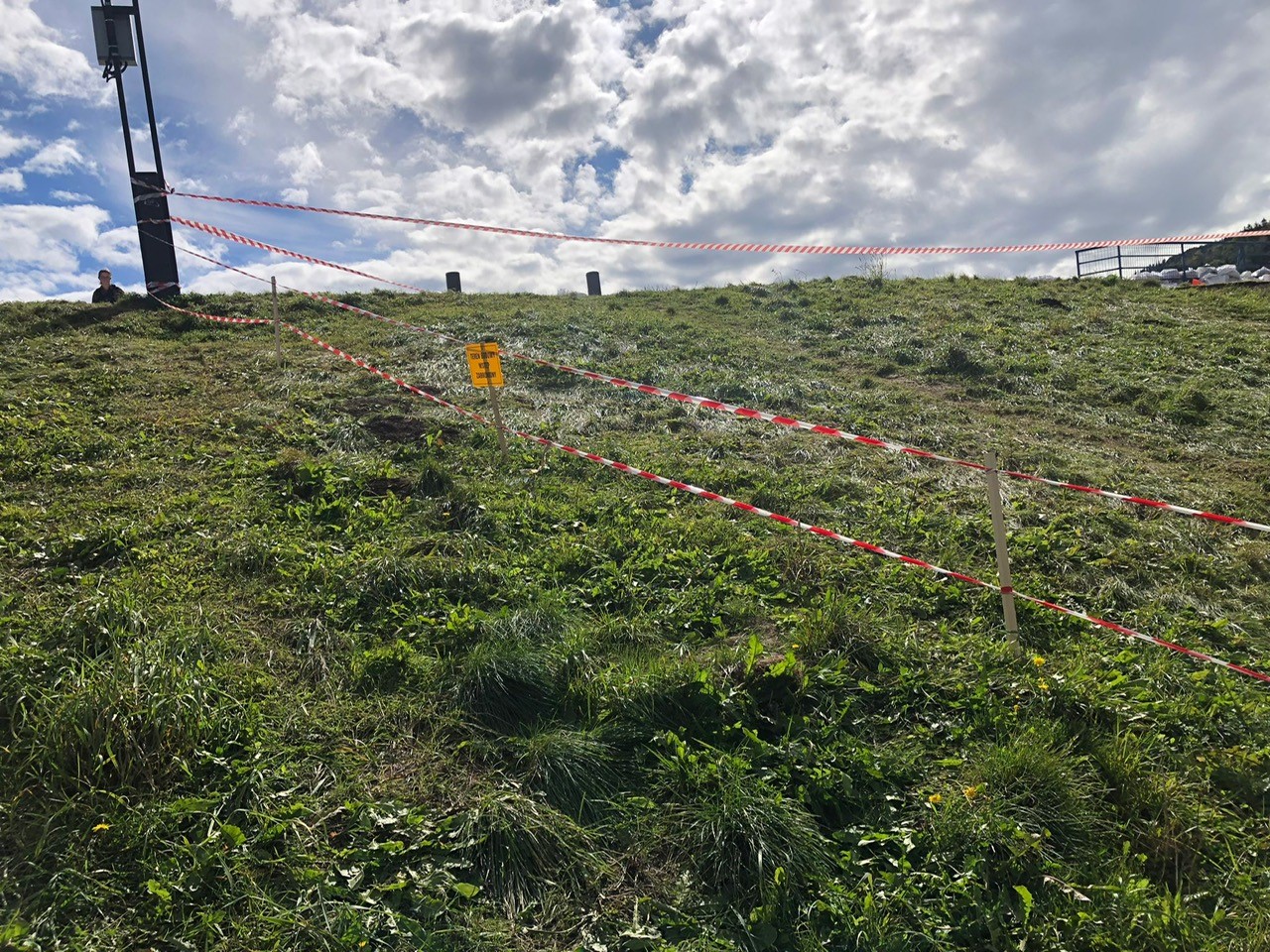 – trwałe wygrodzenie i oznakowanie tablicami ostrzegawczymi strefy niebezpiecznej w odległości 10 m od krawędzi zniszczonej lewej skarpy zapory od strony odwodnej i odpowietrznej,