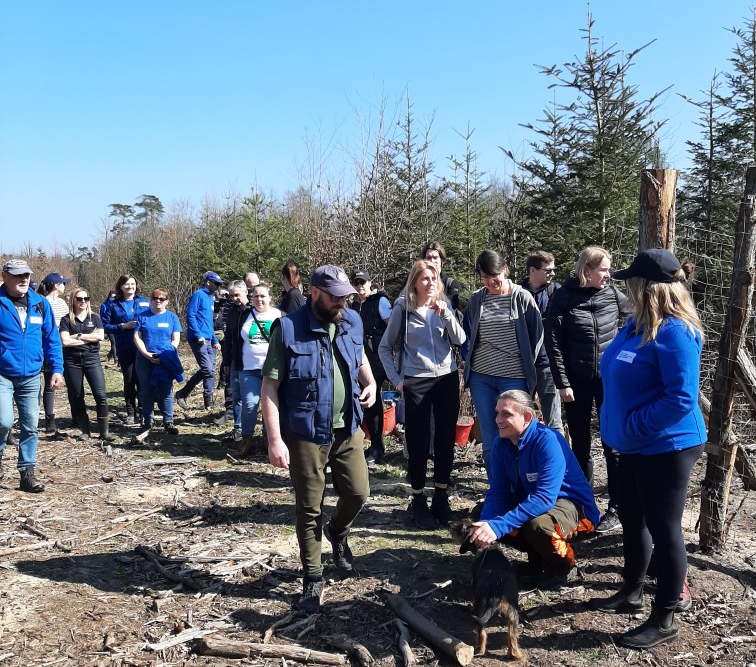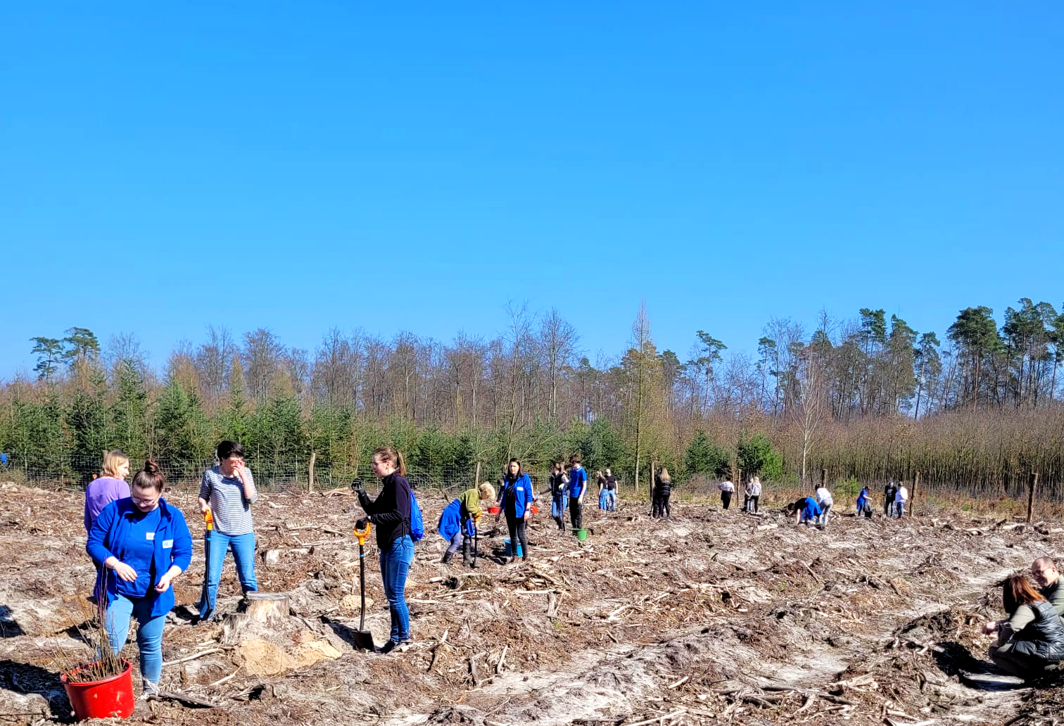 Pracownicy Wód Polskich z Leszna, Milicza i innych nadzorów wodnych w akcji sadzenia drzew we współpracy z Lasami Państwowymi