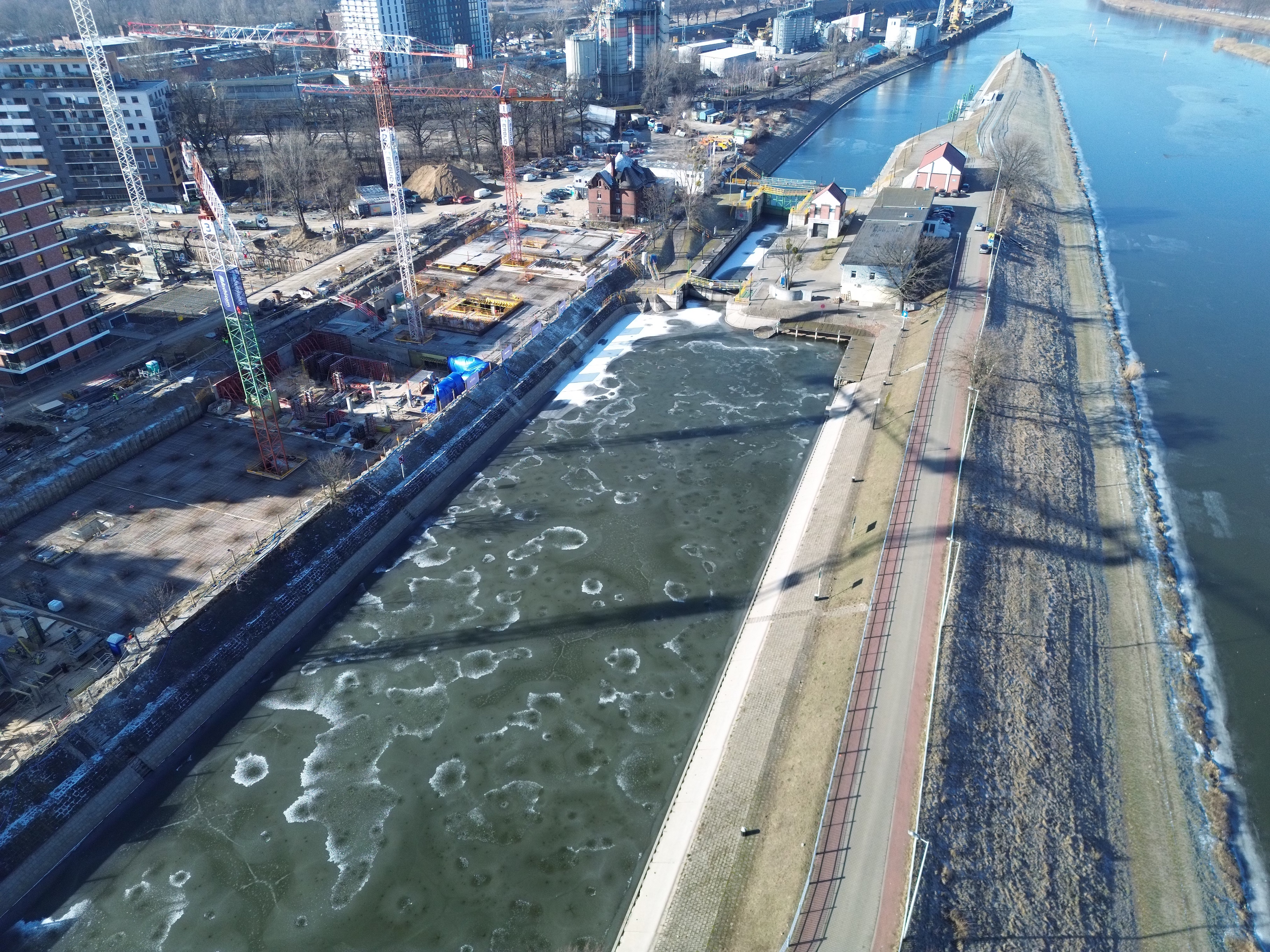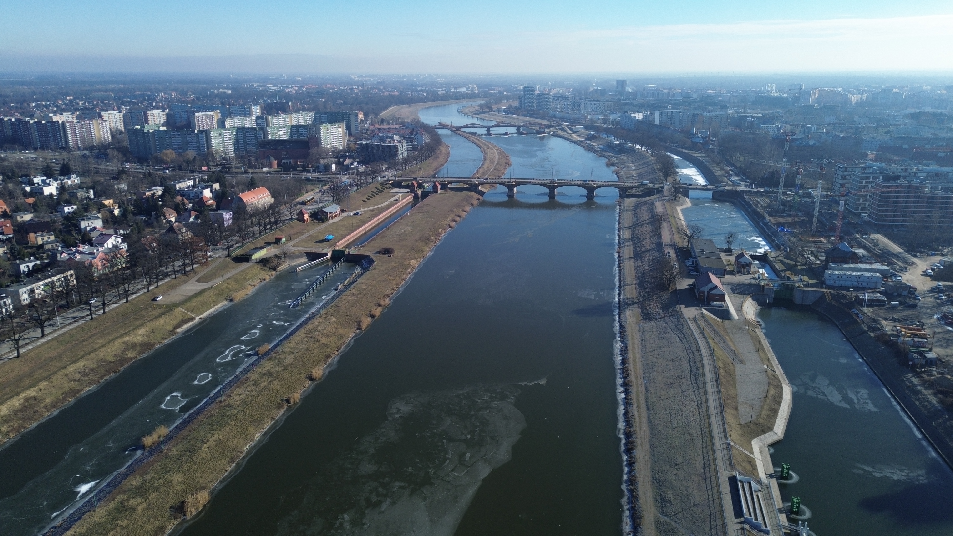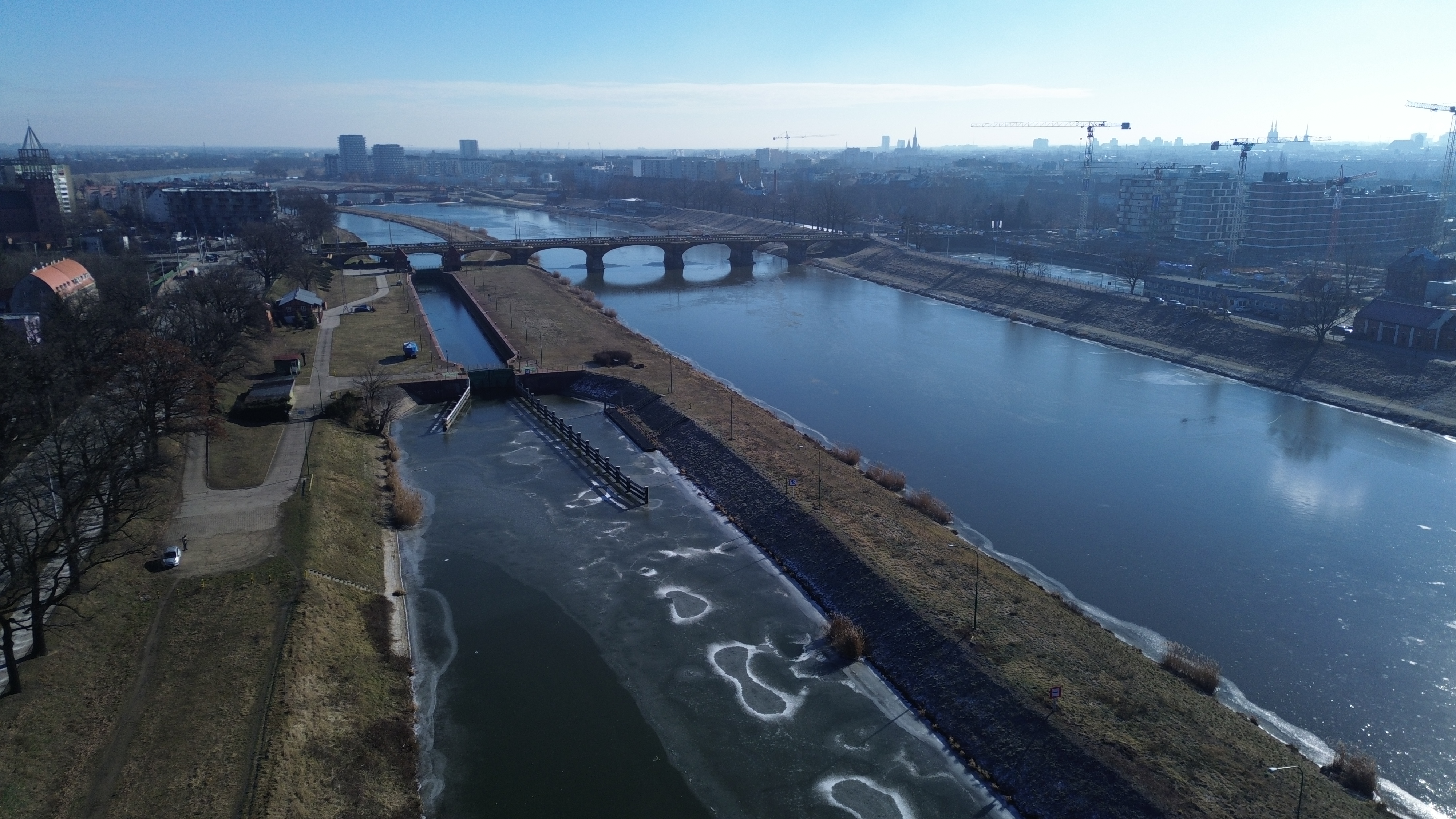 Odra na odcinku skanalizowanym jest wolna od lodu z wyjątkiem pokrywy lodowej o grubości do 1 cm na Starej Odrze we Wrocławiu. W kanałach, awanportach śluz oraz samych śluzach w większości występuje pokrywa lodowa do 90% powierzchni i maksymalnie do 3 cm grubości. Na odcinku Odry swobodnie płynącej brak zjawisk lodowych.