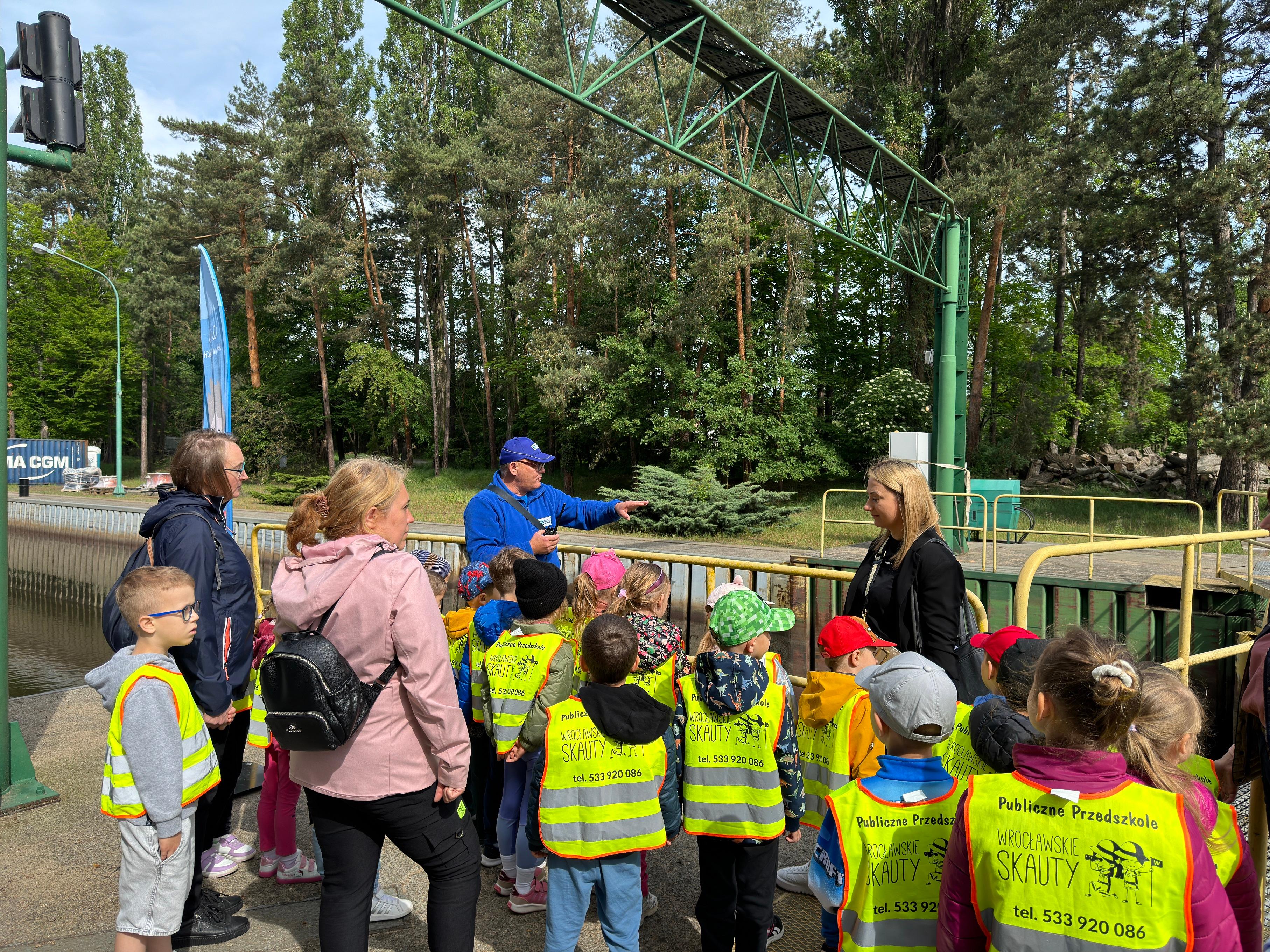 Przedszkolaki z wizytą na stopniu wodnym Zacisze we Wrocławiu