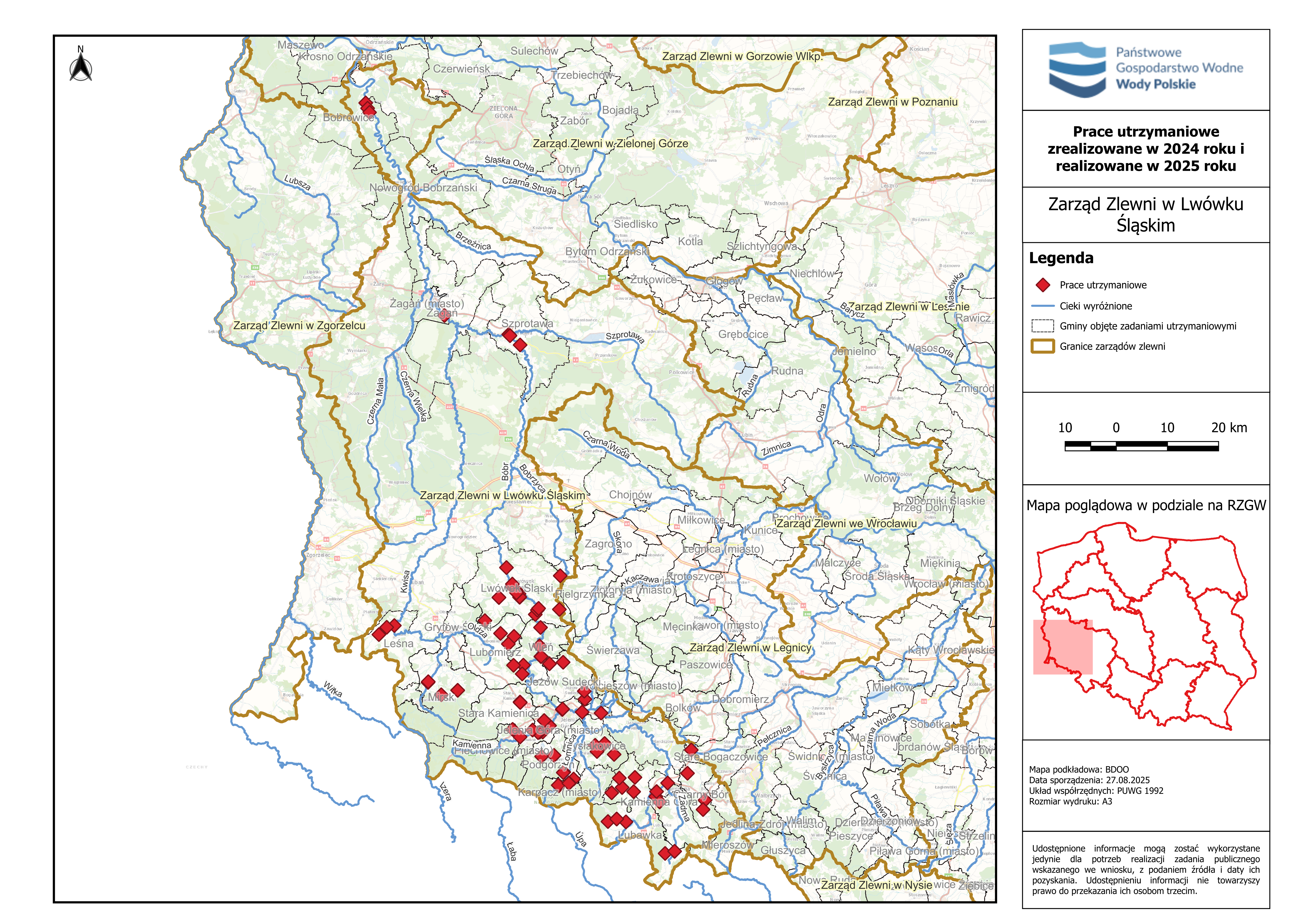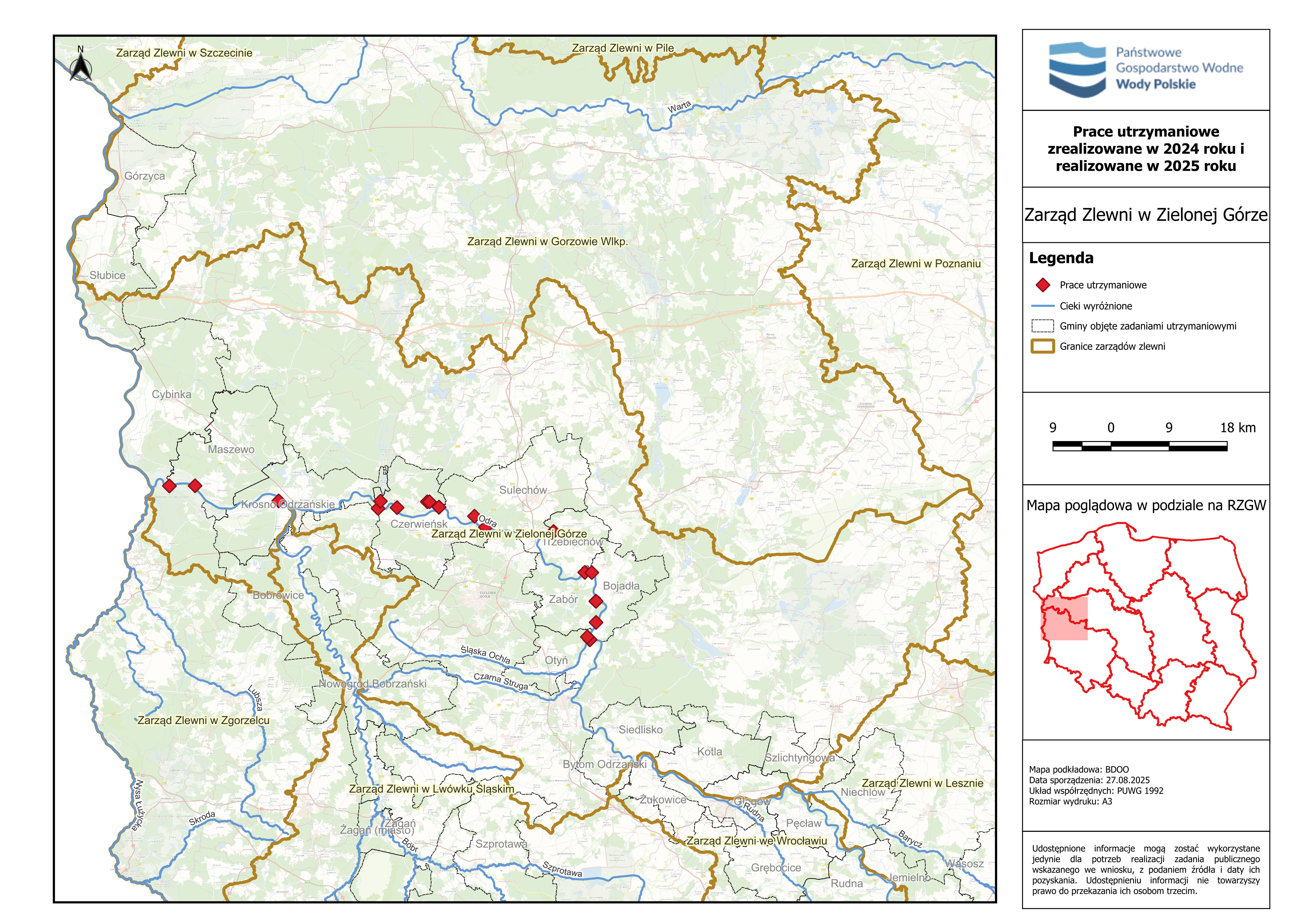 Do najważniejszych zadań w realizacji do końca 2025 roku należą naprawa budowli zrzutowej suchego zbiornika Cieplice wraz z udrożnieniem cieków w czaszy zbiornika, naprawa zabudowy regulacyjnej na 7 kilometrowym odcinku rzeki Płóczki oraz 13 km odcinku rzeki Osownia w gminie Lwówek Śląski, naprawa zabudowy regulacyjnej wraz z udrożnieniem 5 km odcinka rzeki Radomierka w gminie Jelenia Góra, a także odtworzenie niemal 2,7 km odcinka Piastówki w gminie Piechowice czy naprawa budowli zrzutowej suchego zbiornika Krzeszów II.
