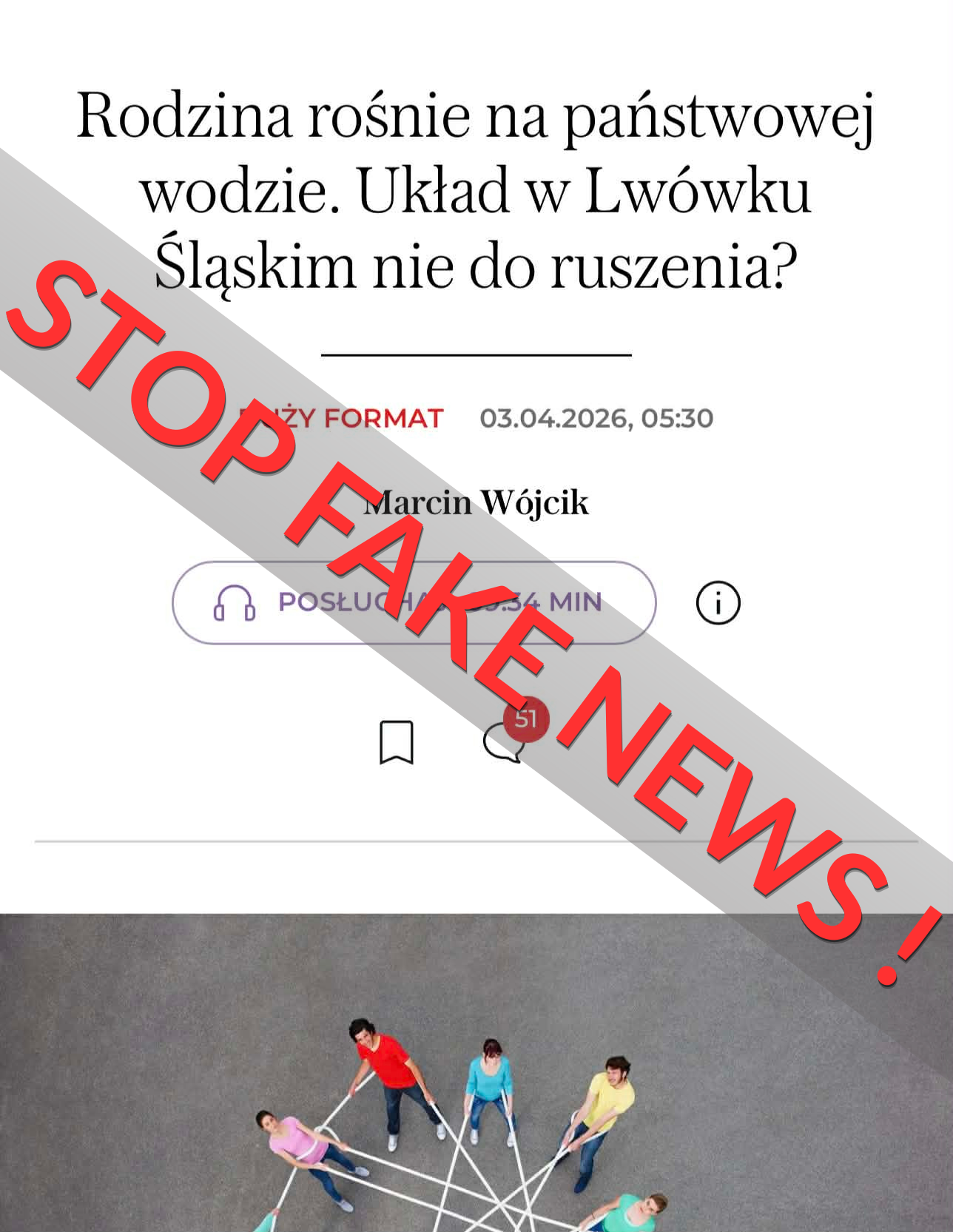 Opublikowany w serwisie internetowym Gazety Wyborczej 3 kwietnia 2026 r. artykuł pt. „Rodzina rośnie na państwowej wodzie. Układ w Lwówku Śląskim nie do ruszenia?", zawiera szereg nieprawdziwych informacji.