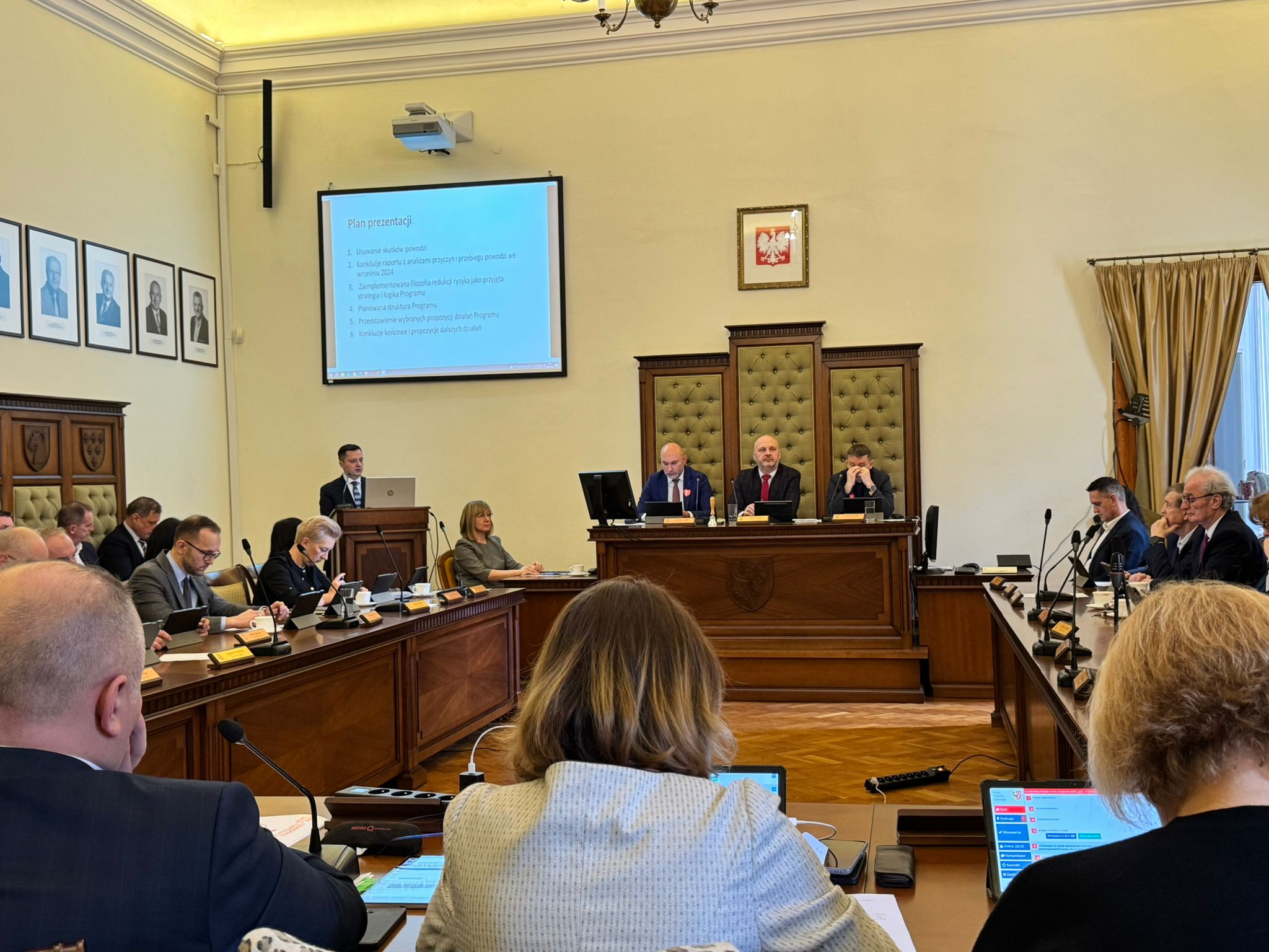 Następnie, Wiceprezes Wód Polskich przedstawił temat Programu redukcji ryzyka powodziowego w zlewni Nysy Kłodzkiej. Wskazał, że Wody Polskie we współpracy z rządem, pracują nad pozyskaniem środków finansowych na realizację działań przeciwpowodziowych w zlewni Nysy Kłodzkiej. Dodał, że pieniądze mogą pochodzić jednocześnie z budżetu państwa, funduszy unijnych i Banku Światowego.