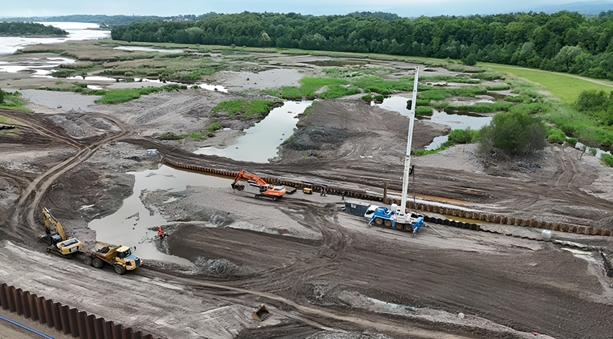 W ubiegłym tygodniu prowadzono roboty związane z usuwaniem odsypiska z kruszywa pochodzącego z uszkodzonych gabionów, czyli elementów budowlanych wzmacniających skarpy lub mury oporowe. Wykonywana jest warstwa stabilizująca i budowa nasypu w dolnym stanowisku zbiornika. Trwa również pogrążanie grodzic ścianki szczelnej, która docelowo zwiększy szczelność konstrukcji. Równolegle prowadzone są prace przy profilowaniu i umacnianiu stanowiska górnej wody z wykorzystaniem kamienia. To sukcesywnie realizowane kroki w kierunku przywrócenia pełnej funkcjonalności obiektu.