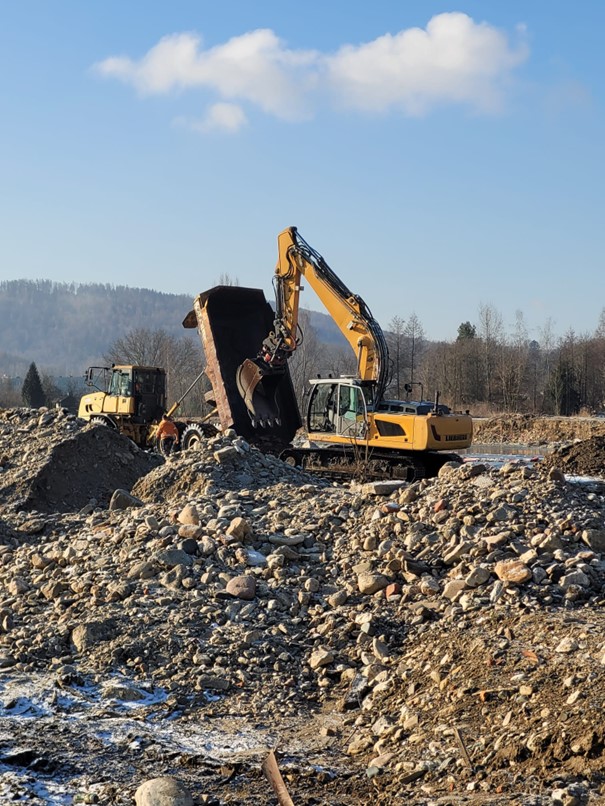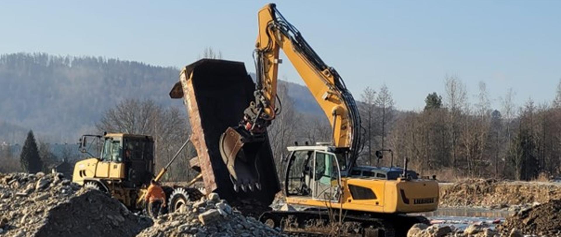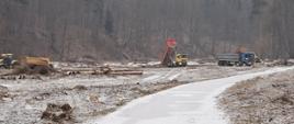 W ramach zadania pod nazwą "Usunięcie lokalnych szkód powodziowych na rzece Biała Głuchołaska w km 0+000 ÷ 23+800" wykonawca w ostatnim czasie odtwarzał przegrodę przeciwfiltracyjną wału prawego, realizował wywóz rumoszu z udrożnionego koryta rzeki, zajmował się formowaniem skarp po udrożnieniu, prowadził dowóz gruntu na miejsca naprawy wałów oraz prowadził usuwanie rumoszu drzewnego i roboty udrażniające koryto rzeczne.