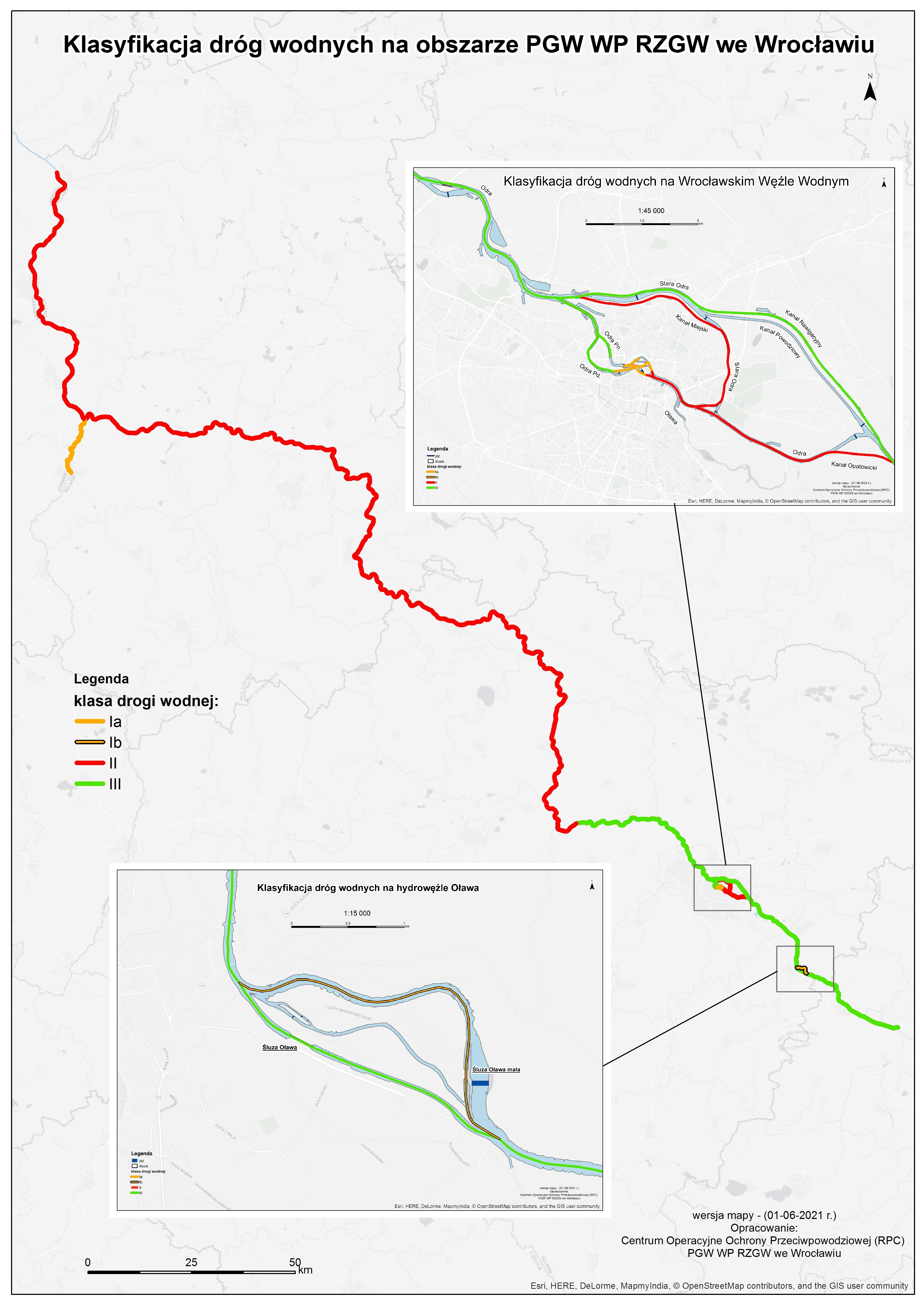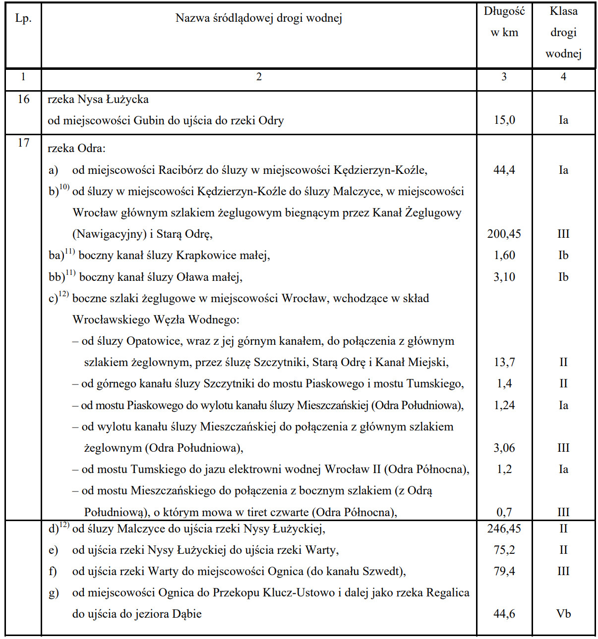 Klasyfikacja dróg wodnych na obszarze PGW WP RZGW we Wrocławiu, zgodna z powyższym Rozporządzeniem, została przedstawiona poniżej ():