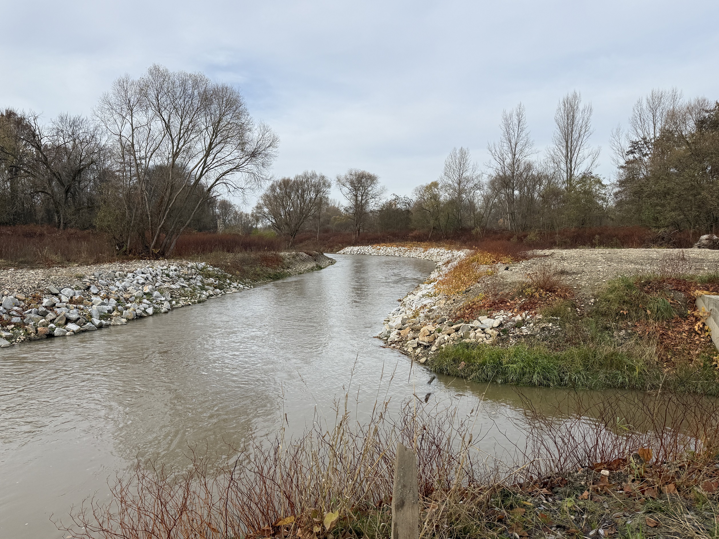 Na suchym zbiorniku przeciwpowodziowym zrealizowano odtworzono mur na przelewie bocznym zapory. Naprawiono kamienną konstrukcję przelewu, uszczelniono konstrukcję kamienną przed przesiąkami i dodatkowo udrożniono ciek przed wlotem do upustów dennych.
