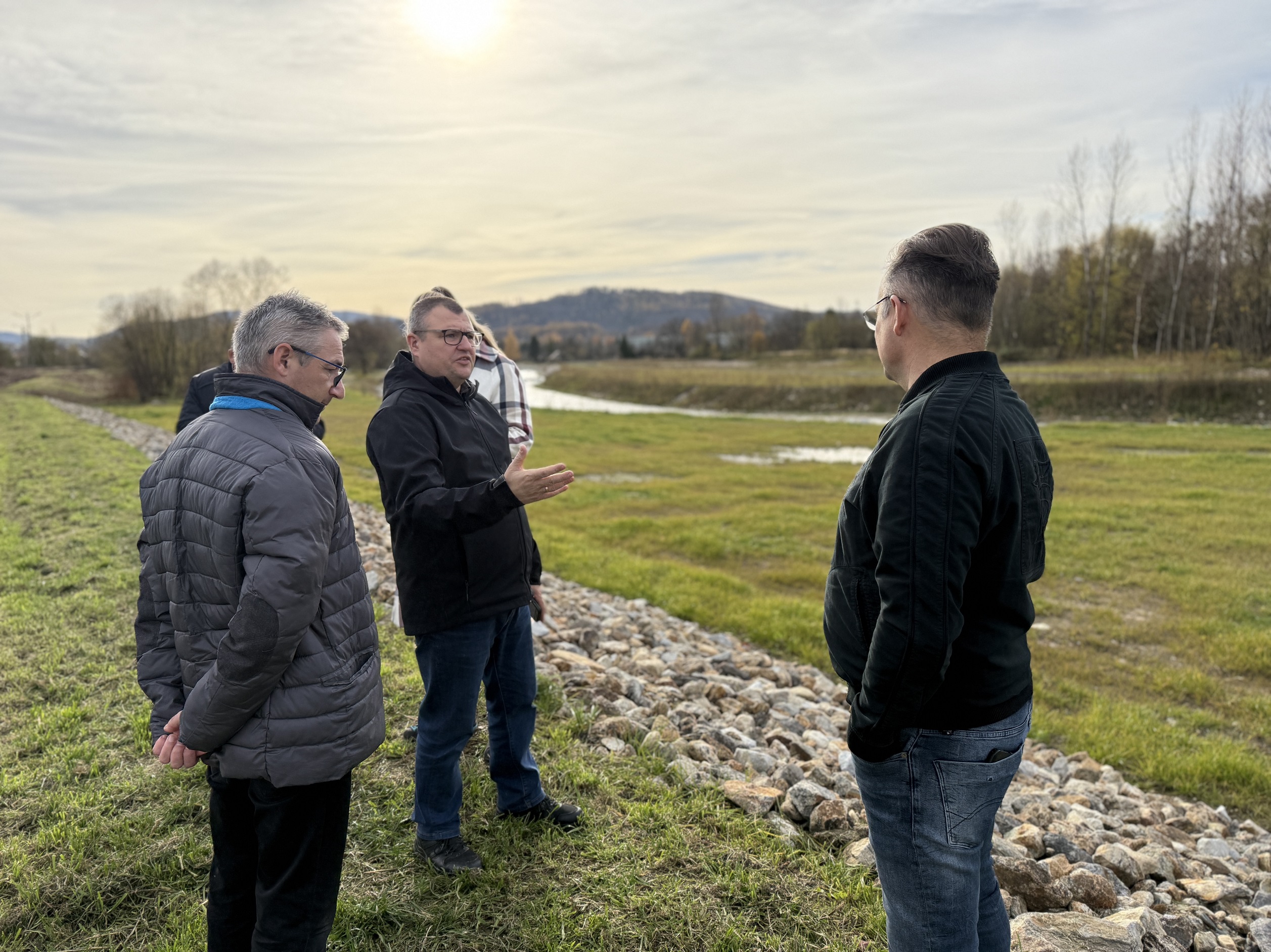 W trakcie spotkań na miejscu omówiono zakres wykonanych robót, techniczne rozwiązania zastosowane przy naprawach oraz efekty przywrócenia budowli hydrotechnicznych do stanu zapewniającego bezpieczeństwo przed wezbraniami.