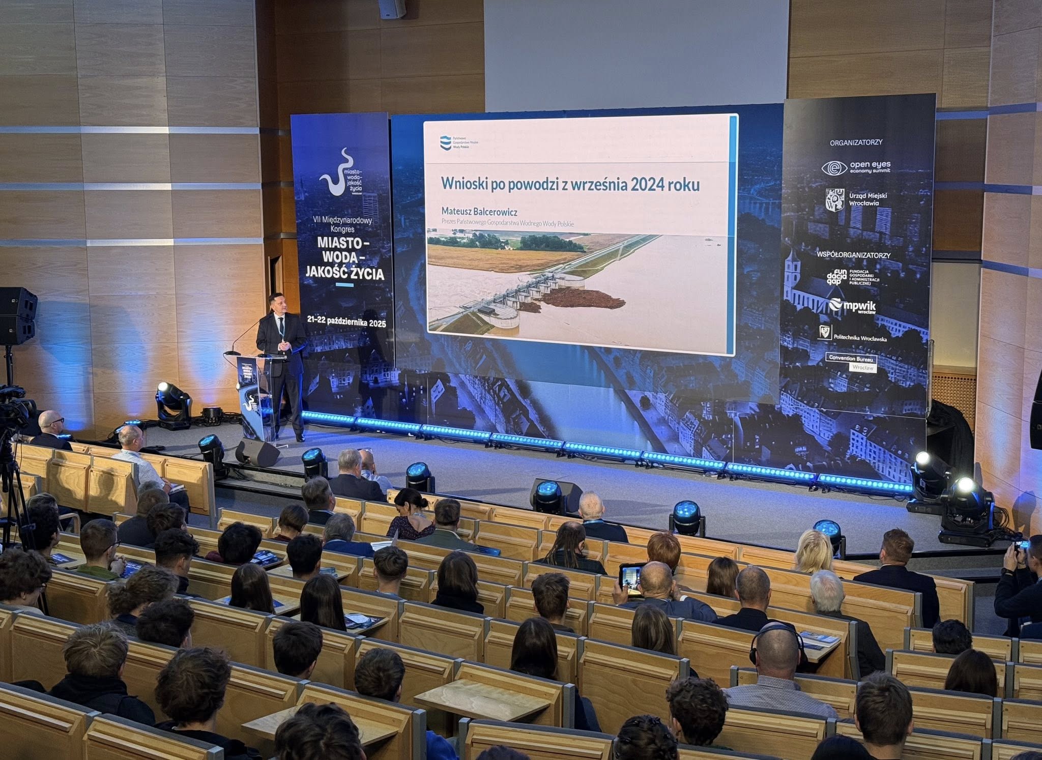 Uroczysta inauguracja VII Międzynarodowego Kongresu „Miasto - Woda - Jakość Życia” we Wrocławiu zainicjowała ekspercką debatę na temat skutków powodzi z 2024 roku oraz przyszłości infrastruktury przeciwpowodziowej w Polsce. Wydarzenie, którego partnerem strategicznym są Wody Polskie, zgromadziło przedstawicieli administracji rządowej i samorządowej, naukowców oraz specjalistów z kraju i zagranicy. Silne zaangażowanie Wód Polskich - zarówno poprzez patronat instytucjonalny, jak i aktywny udział ich przedstawicieli w sesjach merytorycznych - podkreśliło rangę Kongresu jako kluczowej platformy wymiany wiedzy i doświadczeń w zakresie gospodarki wodnej i bezpieczeństwa hydrotechnicznego.