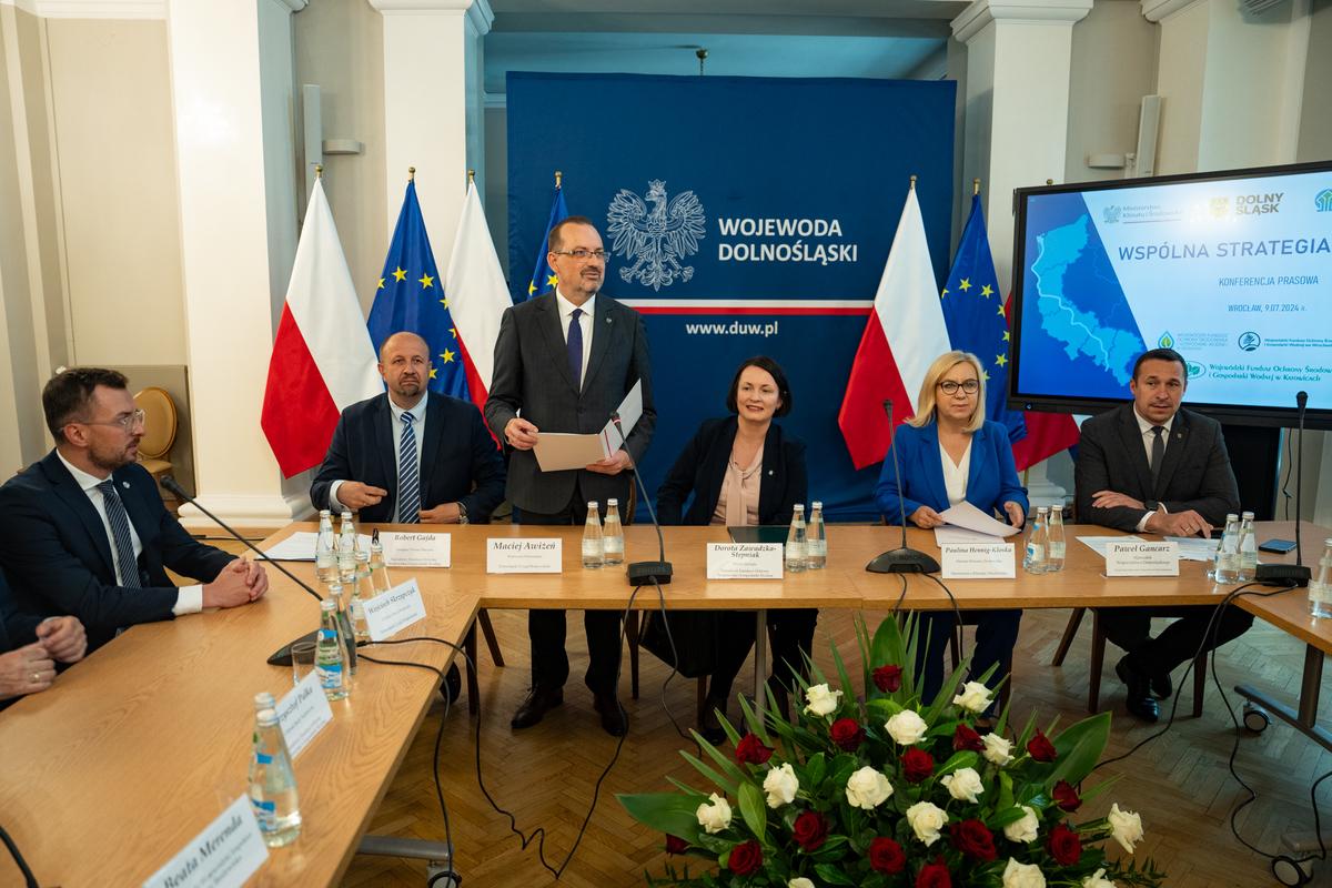 W wydarzeniu, jakie miało miejsce 9 lipca 2024 roku w Dolnośląskim Urzędzie Wojewódzkim we Wrocławiu, którego inicjatorem był Narodowy Fundusz Ochrony Środowiska i Gospodarki Wodnej, wzięły udział Pani Wiceprezes Wód Polskich ds. Usług Wodnych Magdalena Żmuda oraz Pani Dyrektor RZGW we Wrocławiu Beata Głuchowska. W konferencji pod nazwą "Wspólna strategia dla Odry", uczestniczyli również między innymi Pani Minister Klimatu i Środowiska Paulina Hennig-Kloska, Wojewoda Dolnośląski Maciej Awiżeń oraz przedstawiciele najważniejszych instytucji związanych z Odrą i ochroną środowiska, w tym reprezentanci wszystkich nadodrzańskich wojewódzkich funduszy ochrony środowiska czy Ministerstwa Infrastruktury.