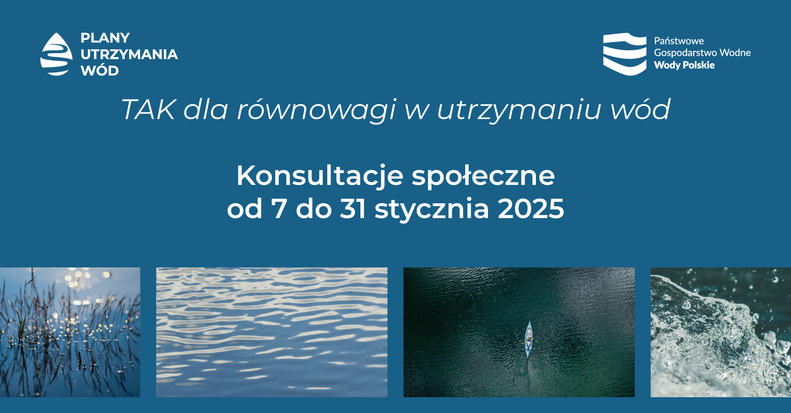 7 stycznia 2025 r. rozpoczną się konsultacje społeczne projektów jedenastu Planów utrzymania wód w regionach wodnych, na obszarach działania PGW Wody Polskie Regionalnych Zarządów Gospodarki Wodnej oraz sporządzonych dla tych dokumentów Prognoz oddziaływania na środowisko.