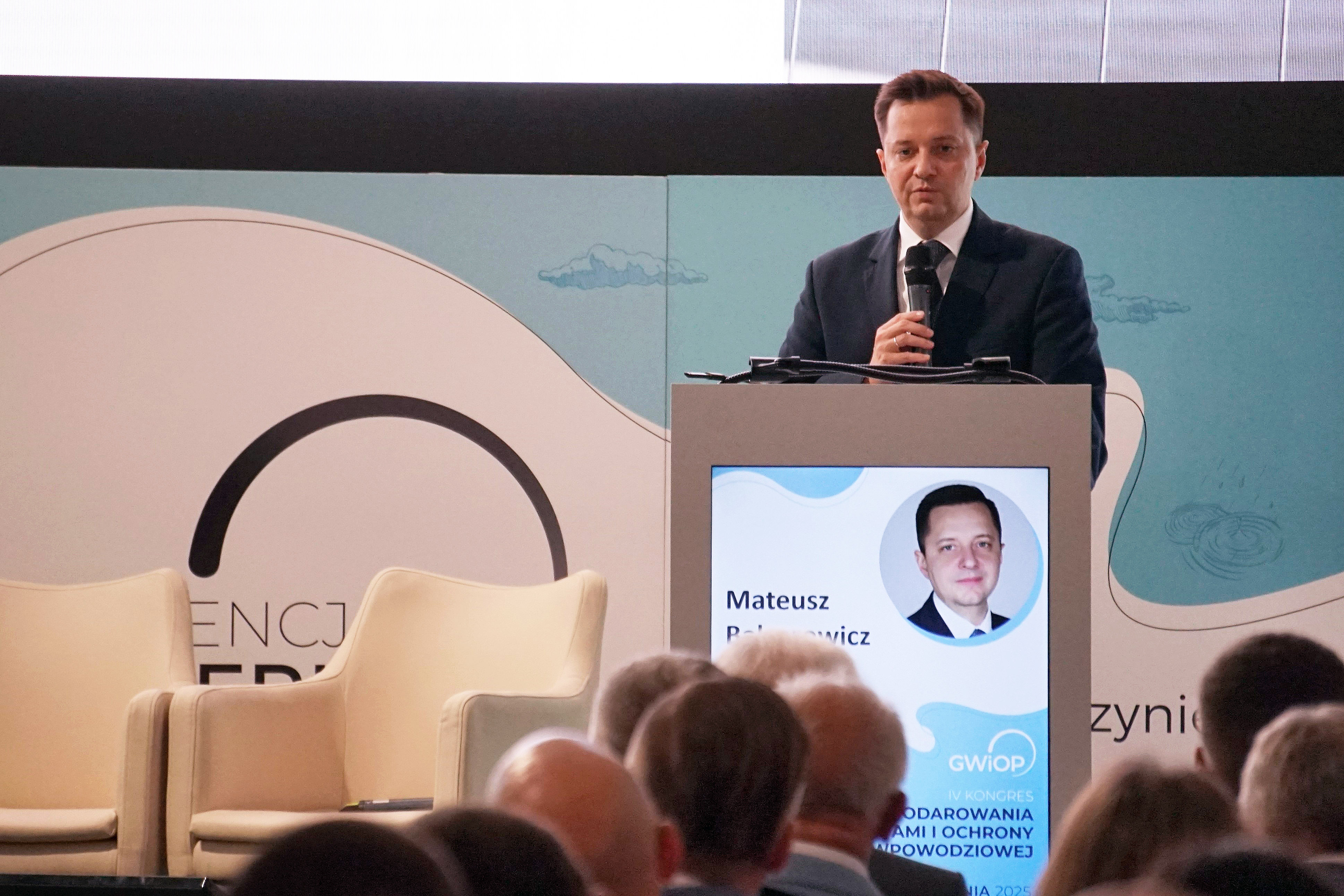 – Zmiany klimatyczne przyspieszają i stają się jednym z podstawowych problemów, z którymi się mierzymy i będziemy mierzyć w przyszłości. Ekstremalne zjawiska pogodowe wymagają systemowego podejścia, adaptacji i inwestycji. Chociaż roczna ilość opadów się nie zmieniła, zmieniła się ich struktura, która stanowi dla nas wszystkich wielkie wyzwanie – powiedział prezes Mateusz Balcerowicz podczas sesji plenarnej otwierającej wydarzenie.