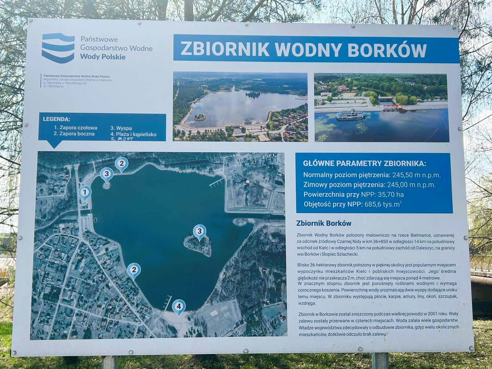 Zbiornik wodny w Borkowie, o powierzchni ponad 35 ha i pojemności przekraczającej 685 tys. m³, został wybudowany w latach 1970–1971 jako zbiornik retencyjno‑rekreacyjny i od ponad 50 lat pełni istotną rolę w lokalnym systemie gospodarki wodnej oraz w życiu mieszkańców regionu. Ze względu na długoletnią eksploatację zbiornik wymaga pilnych prac modernizacyjnych, które pozwolą przywrócić jego pełną sprawność techniczną, poprawić bezpieczeństwo użytkowania oraz wzmocnić funkcje środowiskowe. Realizacja zadania jest oczekiwana zarówno przez samorząd, jak i mieszkańców gminy Daleszyce.