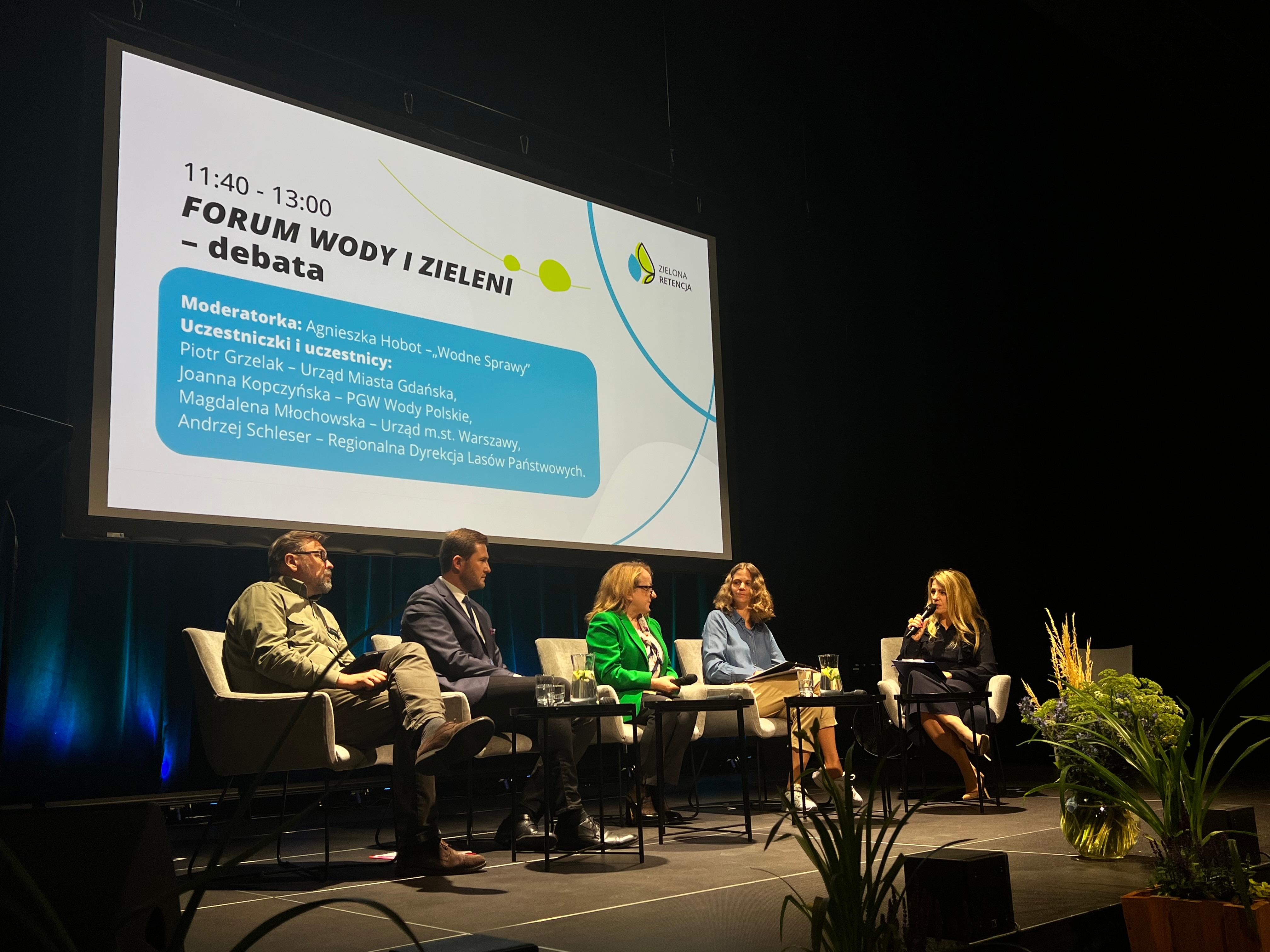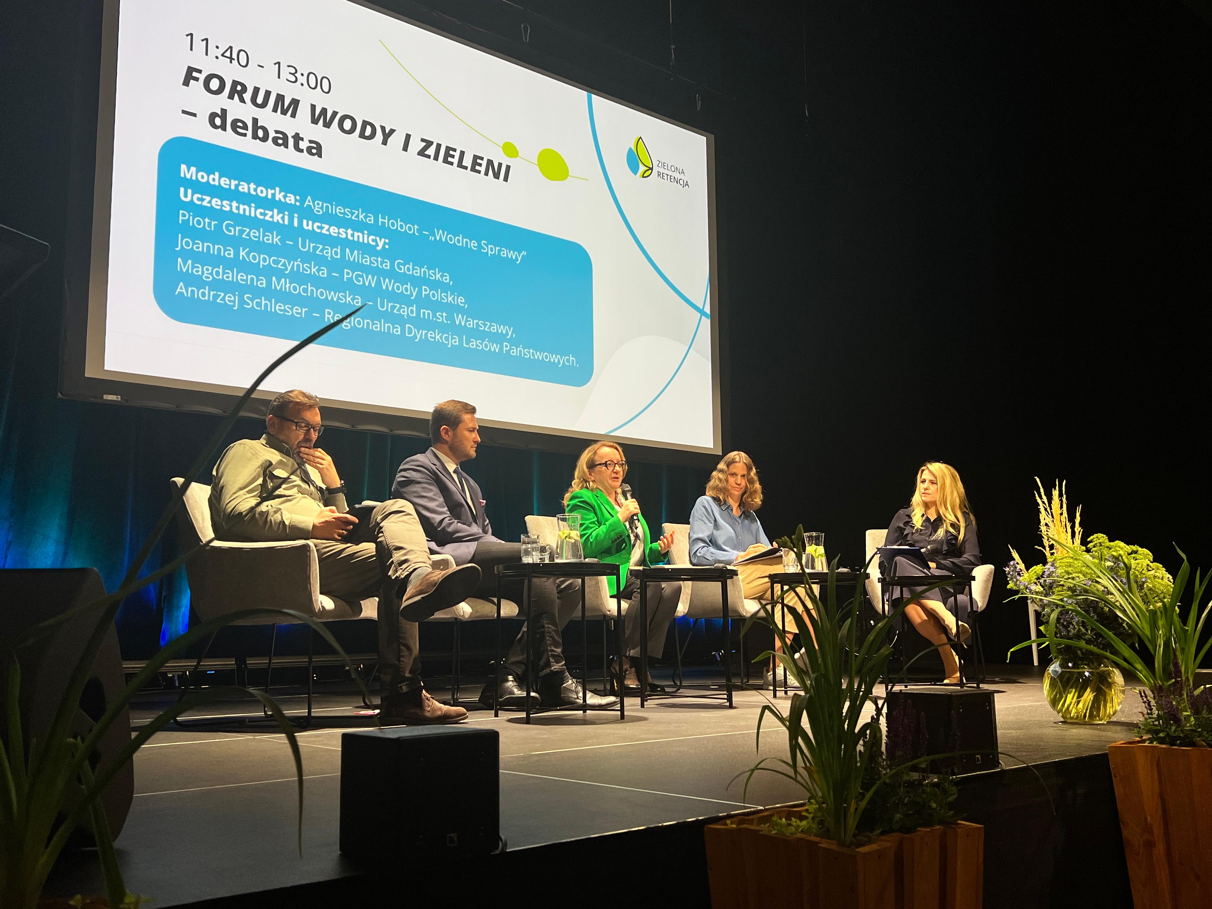 Pierwszego dnia wydarzenia w debacie „Forum Wody i Zieleni” wzięła udział Prezes Joanna Kopczyńska, która mówiła o nowym otwarciu w Wodach Polskich i potrzebie synergii działań podmiotów zarządzających wodami opadowymi dla poprawy retencji i stanu wód w Polsce.