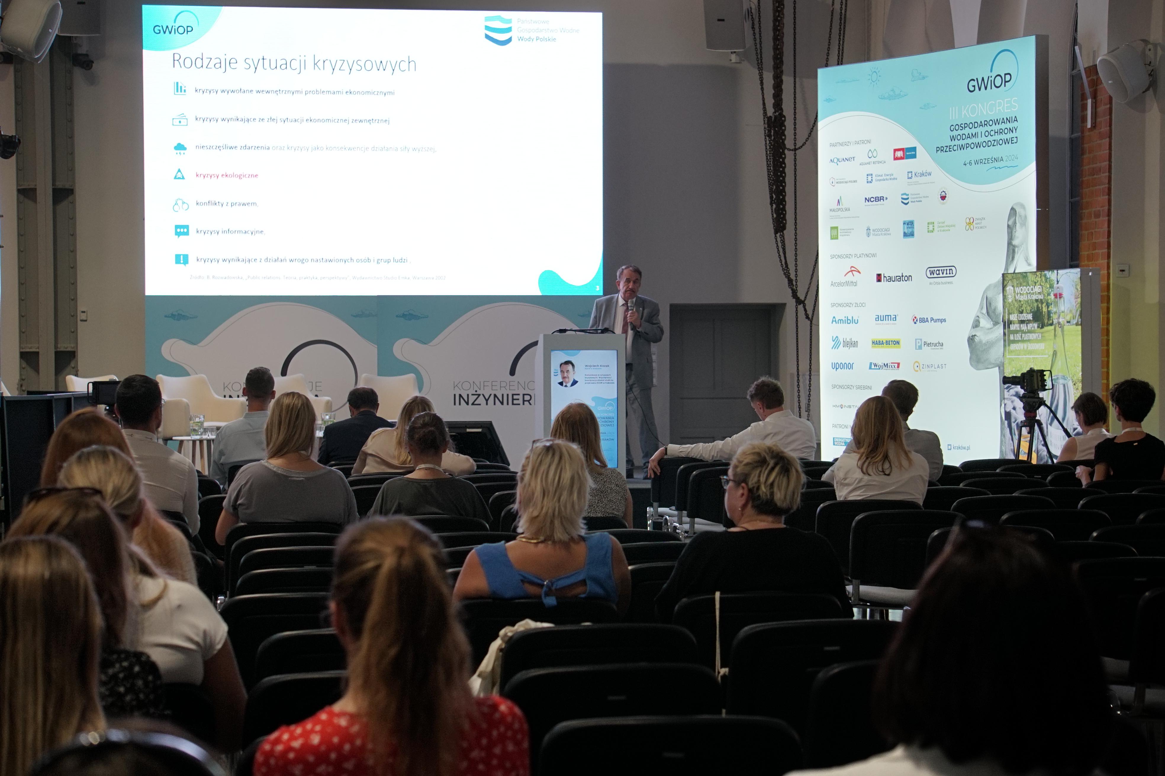 Wojciech Kozak uczestniczył także w sesji poświęconej komunikacji i edukacji, podczas której poruszył temat komunikacji w sytuacjach kryzysowych na przykładzie RZGW w Krakowie.