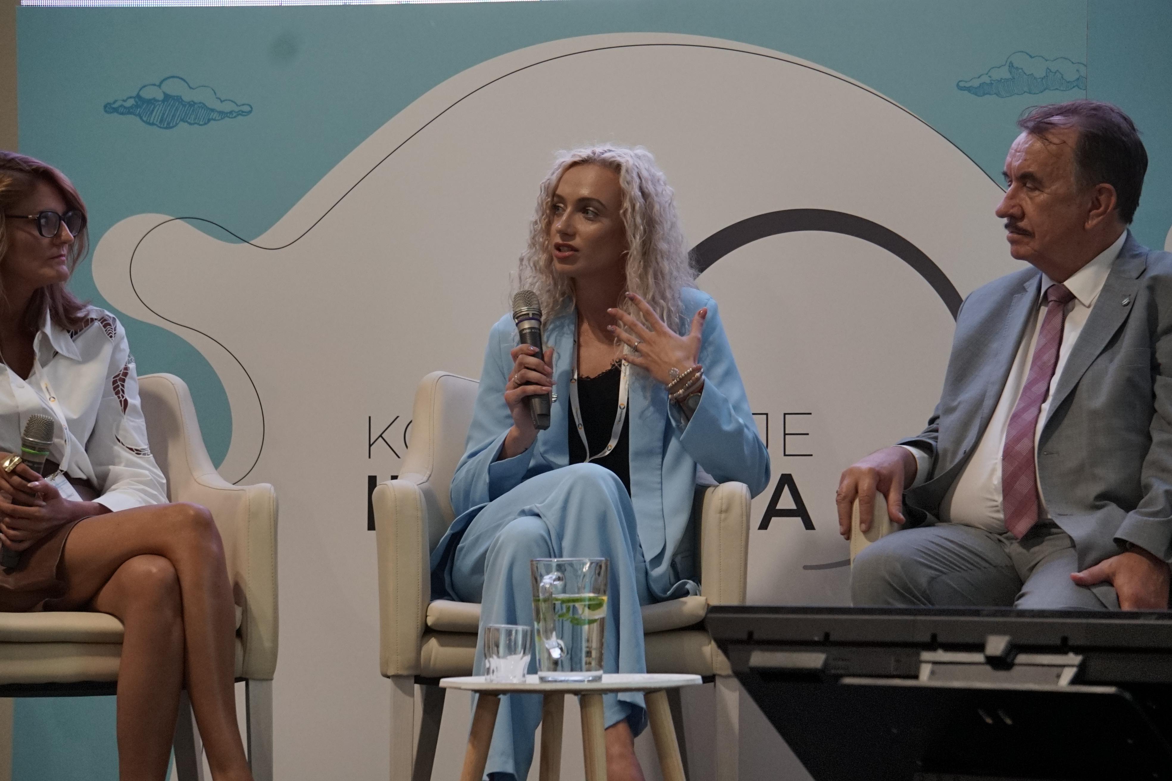 Paulina Pierzchała zabrała głos w sesji dotyczącej komunikacji i edukacji, gdzie wskazywała na ważną rolę edukacji wodnej w dobie współczesnych wyzwań związanych z zarządzaniem wodami.