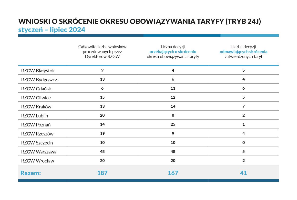 Ponad 68% zatwierdzonych wniosków taryfowych do końca lipca 2024 roku