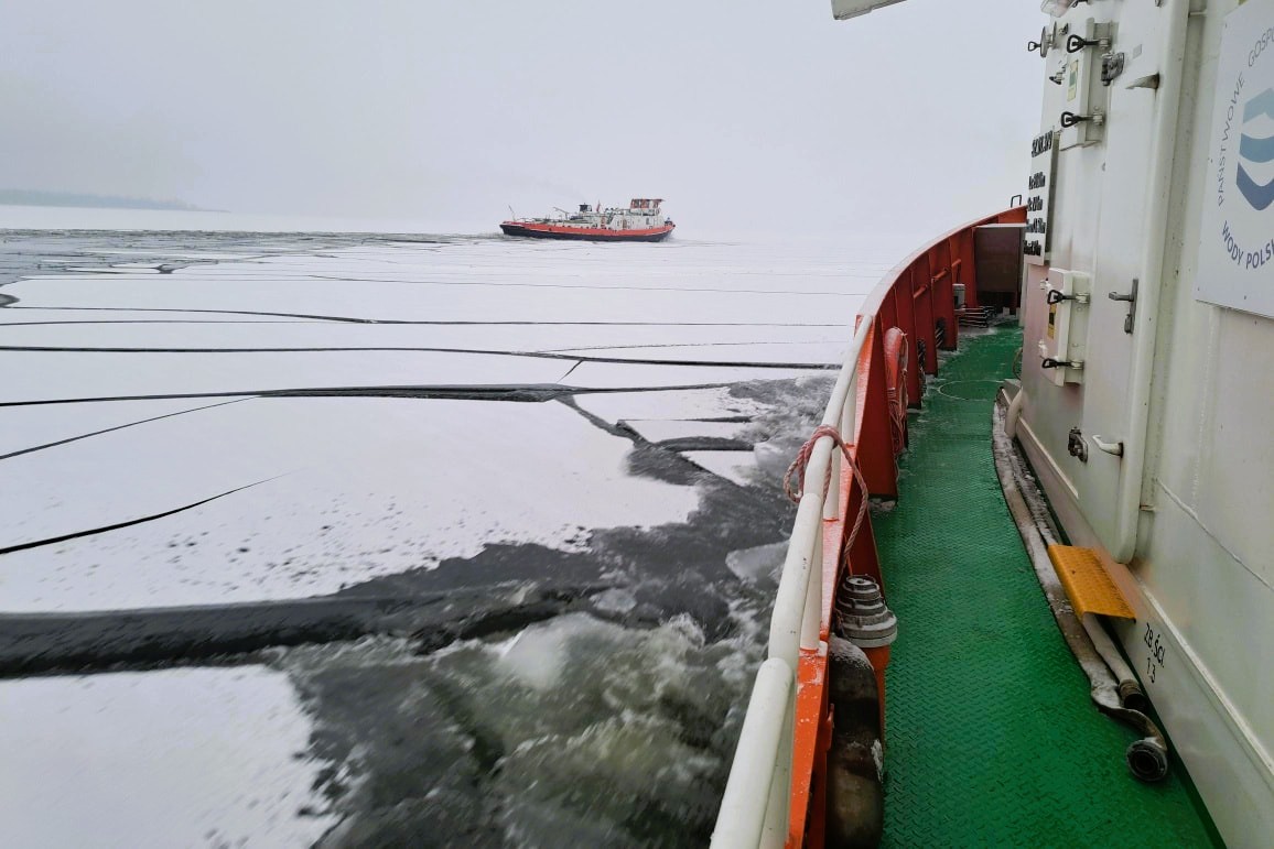 Lodołamacze poszerzyły rynnę na jeziorze Dąbie. Kooperacja polskich i niemieckich jednostek na Odrze
