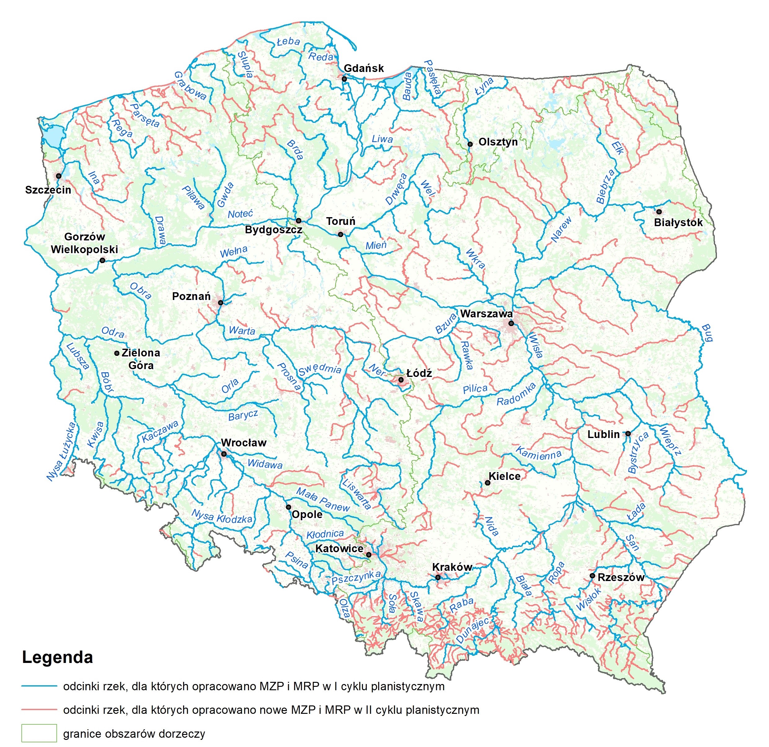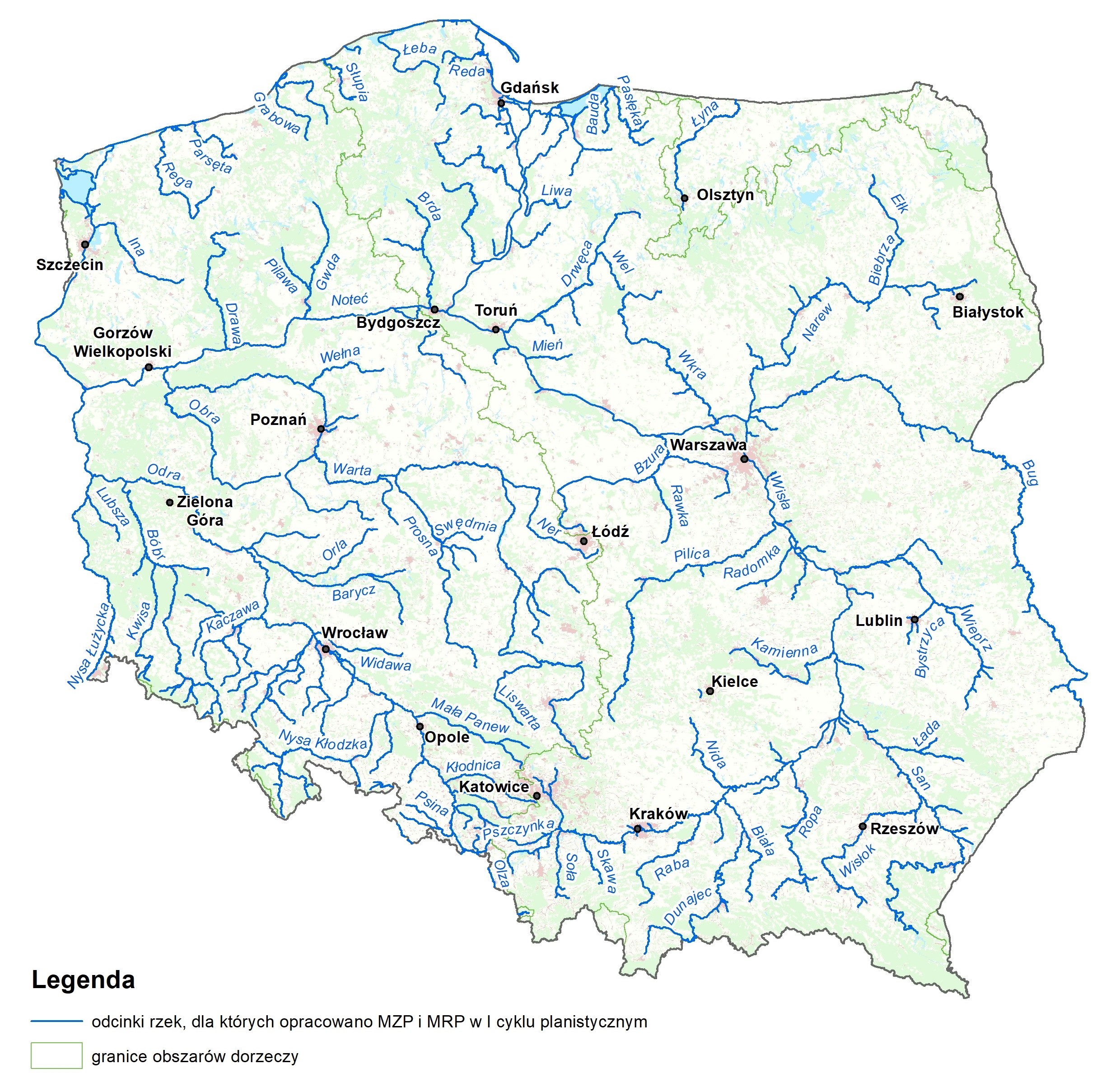Mapy zagrożenia powodziowego oraz mapy ryzyka powodziowego w I cyklu planistycznym zostały sporządzone dla obszarów narażonych na niebezpieczeństwo powodzi wskazanych we wstępnej ocenie ryzyka powodziowego, zakończonej w 2011 r., dla powodzi od strony rzek (dla około 14,5 tys. km rzek) oraz dla powodzi od strony morza.