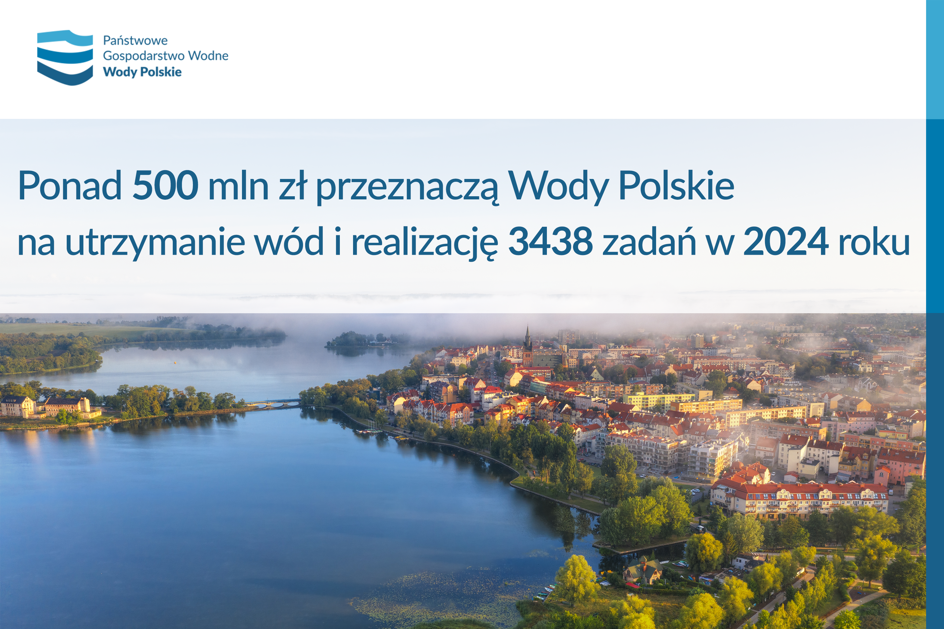 Wody Polskie przeznaczą ponad 532 mln zł na realizację 3438 zadań dotyczących utrzymania wód oraz pozostałego mienia Skarbu Państwa związanego z gospodarką wodną w 2024 roku. Zasadniczym elementem katalogu prac będzie wdrażanie dobrych praktyk. Dzięki temu możliwe będzie jednoczesne osiągnięcie celów związanych zwłaszcza z ochroną przeciwpowodziową z działaniami na rzecz poprawy stanu wód.