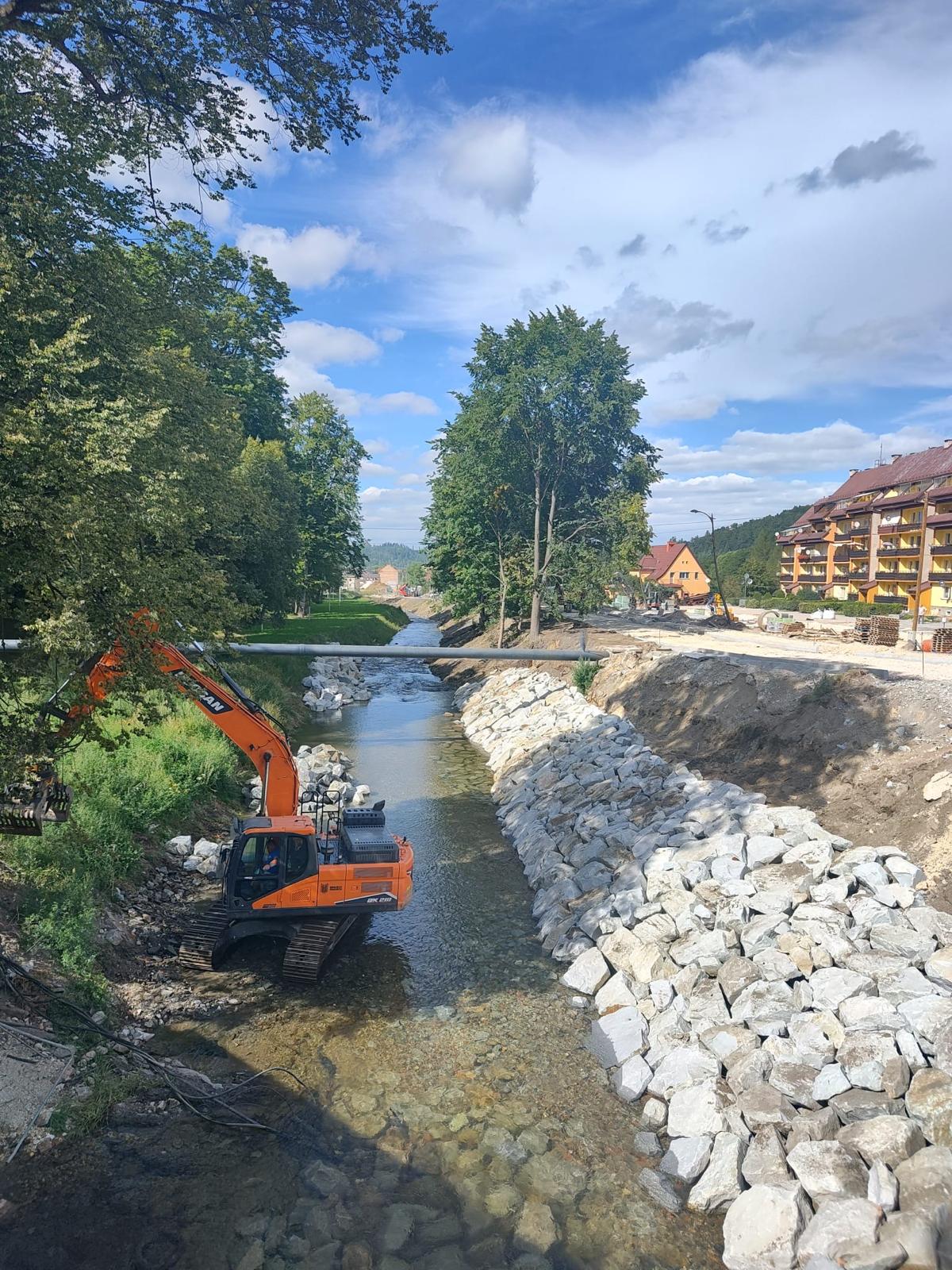 Od maja 2025 r. postępują roboty popowodziowe w Lądku-Zdroju na rzece Białej Lądeckiej. Celem jest usunięcie skutków ubiegłorocznej powodzi w mieście – od przywrócenia drożności koryta, przez wzmocnienie i zabezpieczenie uszkodzonych odcinków infrastruktury przeciwpowodziowej, aż po przygotowanie terenu na wypadek przyszłych wezbrań. Wykonawca m.in. odbudowuje i reprofiluje mury oporowe, a także odtwarza i ubezpiecza umocnienia brzegowe. W sierpniu 2025 r. rozpoczęły się prace w Stroniu Śląskim. Na potoku Morawka przy ul. Nadbrzeżnej trwa odtwarzanie narzutu kamiennego oraz fundamentów muru, które ochronią brzegi przed erozją oraz zabezpieczą zabudowania.