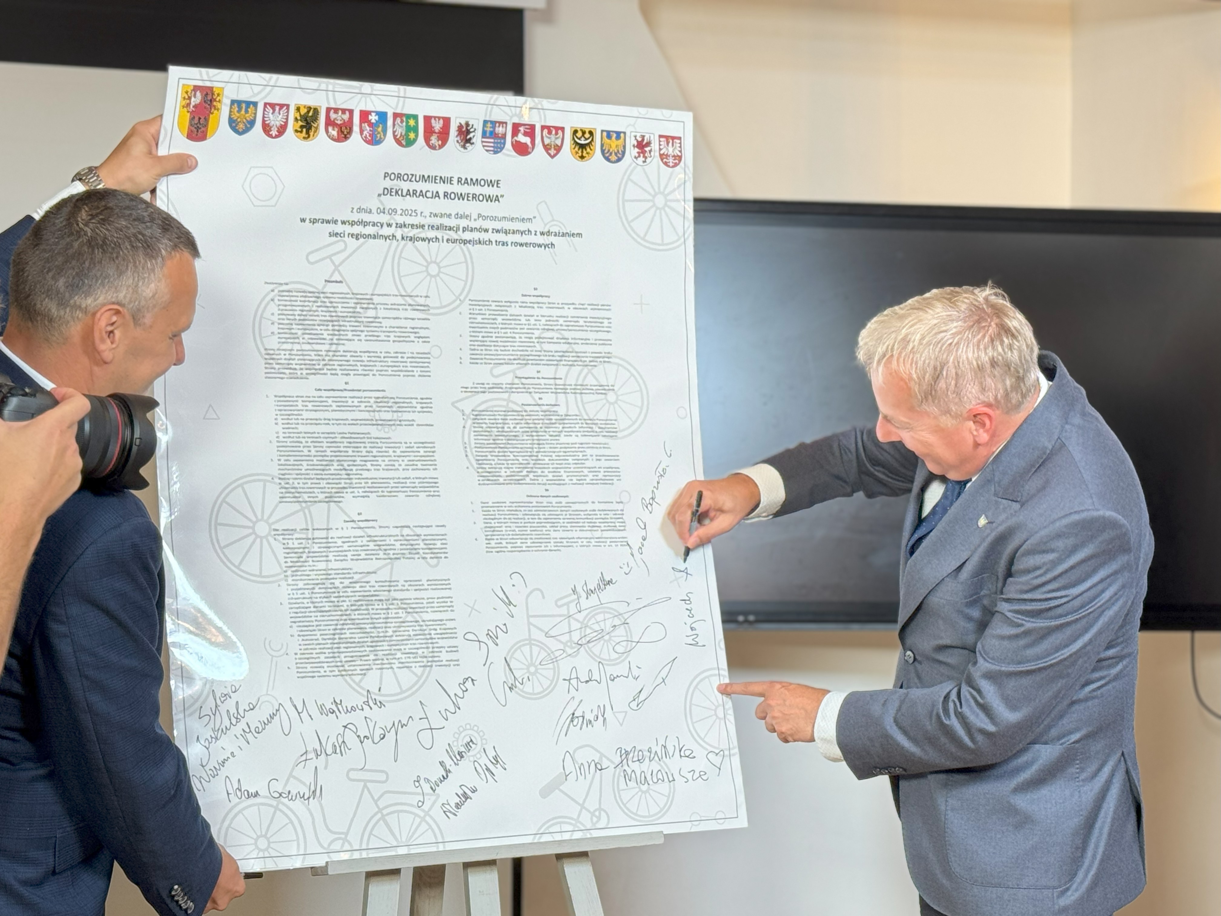 Podczas Konwentu Marszałków Województw RP w Sulejowie podpisaliśmy porozumienie ramowe, które otwiera nowy rozdział w rozwoju tras rowerowych w Polsce. Dzięki współpracy Wód Polskich i samorządów wojewódzkich, budowa ścieżek rowerowych na wałach przeciwpowodziowych stanie się łatwiejsza, bezpieczna i zgodna z przepisami.