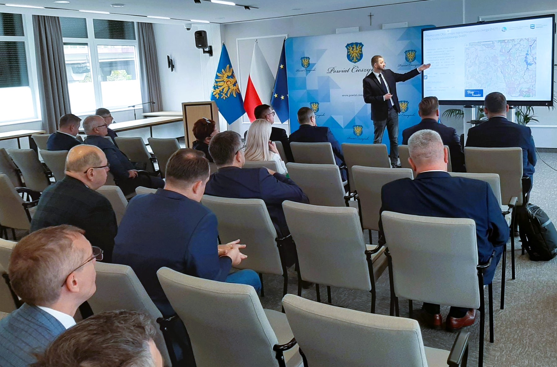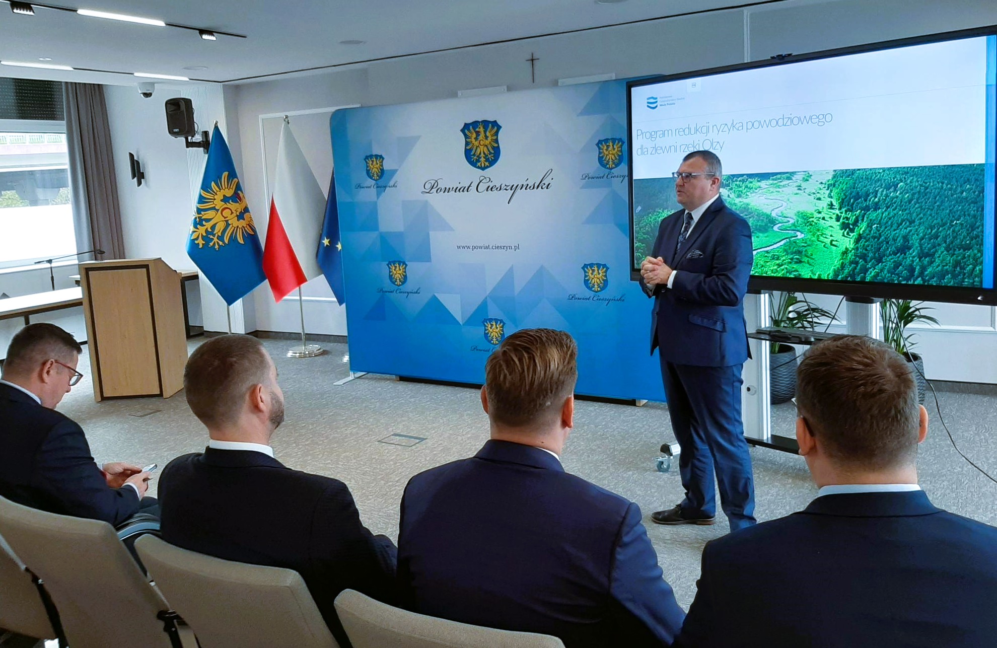 Konsultacje społeczne otworzył Przemysław Koperski - Podsekretarz Stanu w Ministerstwie Infrastruktury, a także m.in. Marcin Jarzyński – zastępca prezesa Wód Polskich ds. Ochrony Przed Powodzią i Suszą, Jan Grygier – dyrektor Regionalnego Zarządu Gospodarki Wodnej w Gliwicach, Starosta Cieszyński – Janina Żagan oraz Paweł Przygrodzki - dyrektor Centrum Hydrologicznej Osłony Kraju, IMGW-PIB. W spotkaniu udział wzięli przedstawiciele władz samorządowych, znajdujących się na obszarach objętych Programem, w tym Gabriela Staszkiewicz – Burmistrz Cieszyna, a także Povodi Odry – instytucji będącej odpowiednikiem Wód Polskich w Republice Czeskiej w zakresie dorzecza Odry.