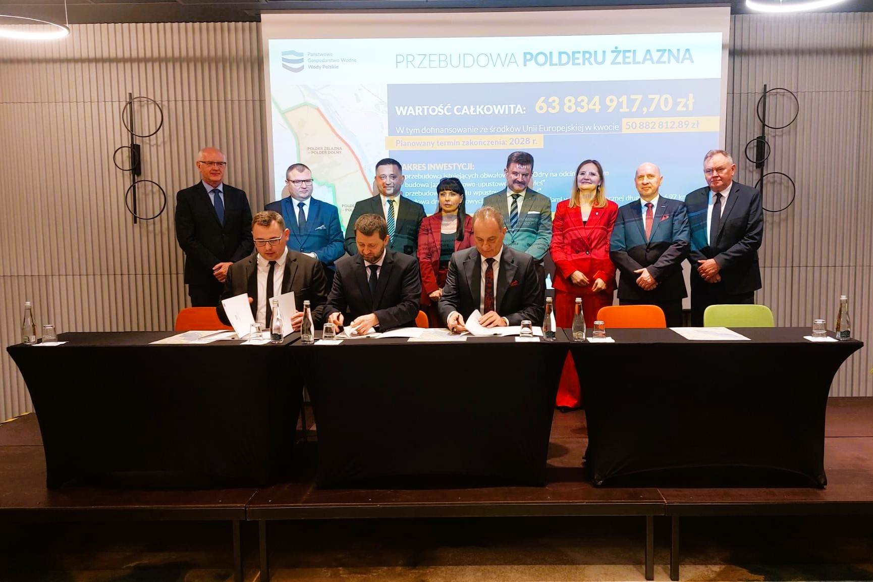 Podpisy pod umowami zostały złożone podczas konferencji, która odbyła się 11 marca 2026 r. w Opolu. W wydarzeniu, obok wiceprezesa Wód Polskich Marcina Jarzyńskiego, uczestniczyli również przedstawiciele Województwa Opolskiego, Miasta Opole, Gminy Dąbrowa oraz spółki Transpol Lider – wykonawcy prac.