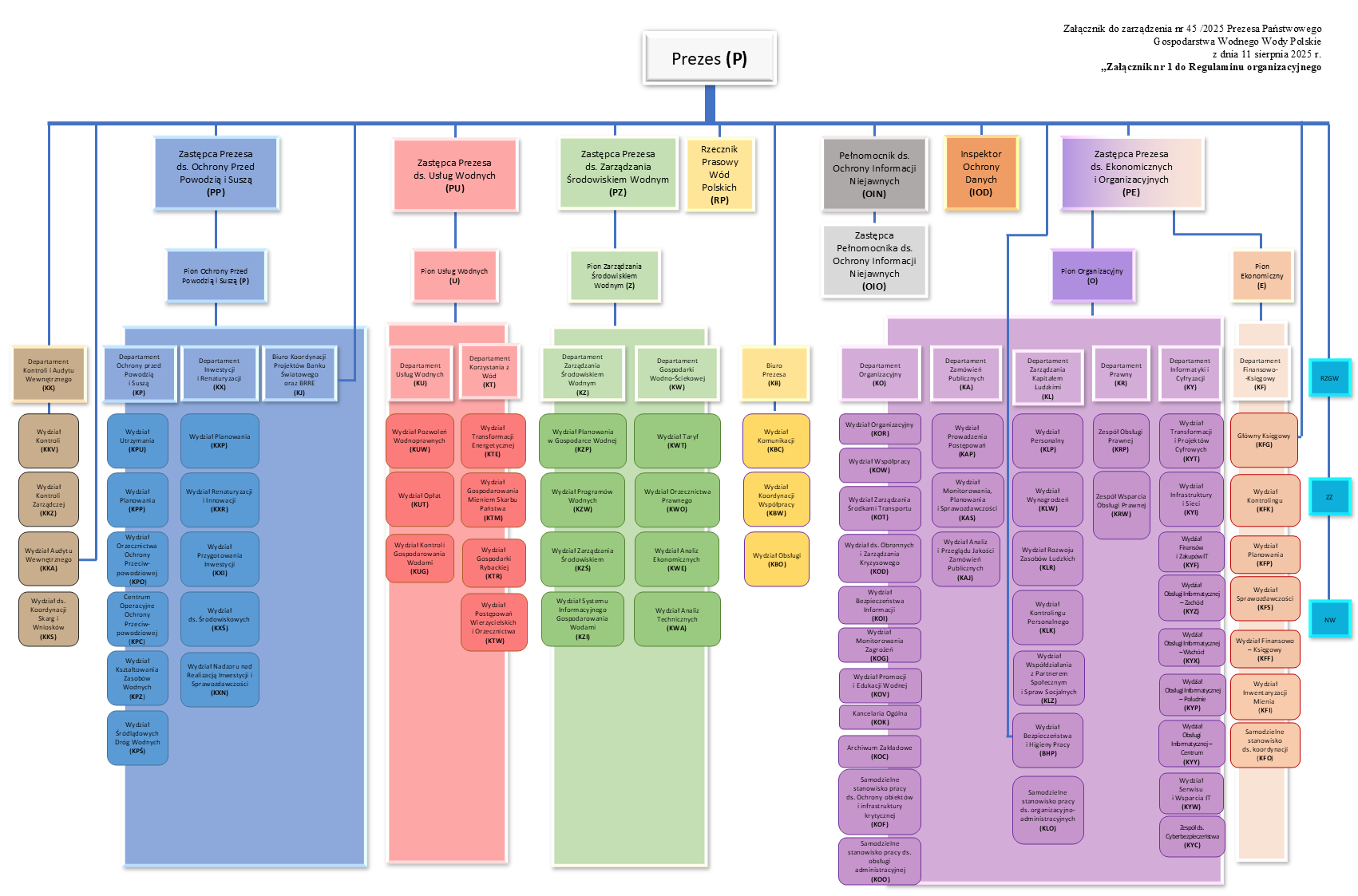 Regulamin organizacyjny Państwowego Gospodarstwa Wodnego Wody Polskie - Załącznik nr 2 do Zarządzenia nr 41 z dnia 31 lipca 2023 r. Prezesa PGW WPZałącznik_nr_2_do_Zarządzenia_nr_41_z_dnia_31_lipca_2023_r_Prezesa_PGW_WP.pdf 0.89MB Zarządzenie Prezesa PGW Wody Polskie nr 45/2025 z dnia 11 sierpnia 2025 r. zmieniające zarządzenie w sprawie nadania regulaminu organizacyjnego PGW Wody Polskie