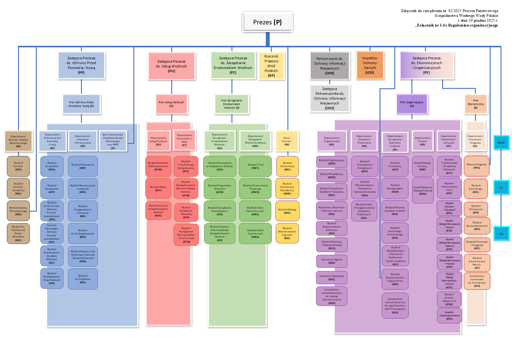Regulamin organizacyjny Państwowego Gospodarstwa Wodnego Wody Polskie - Załącznik nr 2 do Zarządzenia nr 41 z dnia 31 lipca 2023 r. Prezesa PGW WPZałącznik_nr_2_do_Zarządzenia_nr_41_z_dnia_31_lipca_2023_r_Prezesa_PGW_WP.pdf 0.89MB Zarządzenie Prezesa PGW Wody Polskie nr 82/2025 z dnia 30 grudnia 2025 r. zmieniające zarządzenie w sprawie nadania regulaminu organizacyjnego PGW Wody Polskie