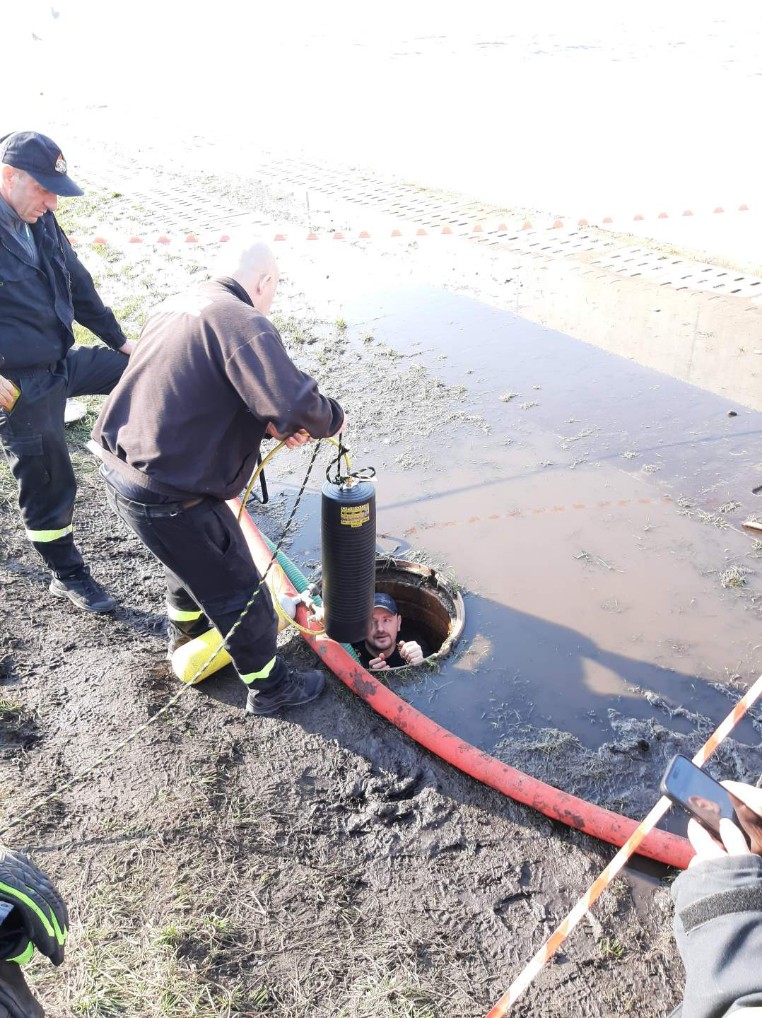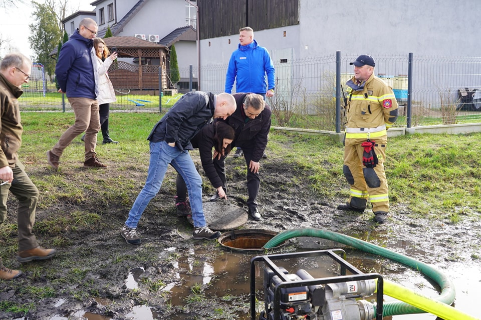 Pompowanie realizowane było do późnych godzin wieczornych i w jego wyniku zwierciadło wody obniżyło się w zalanej części zawala o 65 cm.