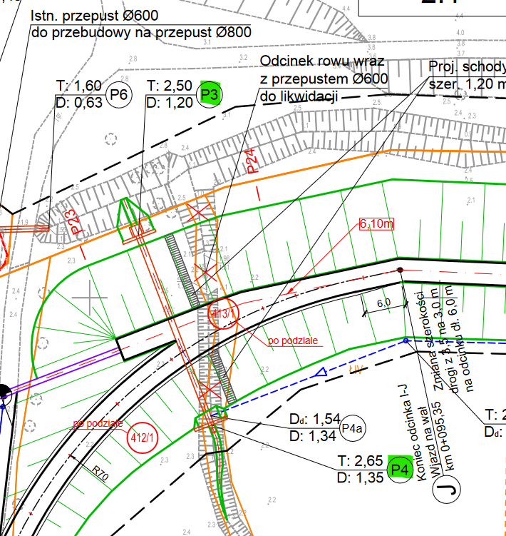 Zarówno w projekcie budowlanym jak i projekcie wykonawczym zawarte zostały informacje dotyczące możliwości odwadniania przenośnymi zestawami pompowymi strony odpowietrznej zabezpieczenia przeciwpowodziowego w sytuacji ograniczenia grawitacyjnego odpływu wód z obszaru zawala. Przepusty wałowe ułożone w ciągu istniejących rowów wyposażone są studnie czerpne zlokalizowane po stronie odpowietrznej wałów przeciwpowodziowych północnego i południowego. Do studni tych włączone są drenaże odwadniające stronę odpowietrzną zabezpieczenia przeciwpowodziowego. W projektach budowlanym i wykonawczym opisano, że zastosowane rozwiązanie ma na celu umożliwienie pompowania wód napływających ze strony odpowietrznej, w sytuacji zamknięcie klap zwrotnych na wylotach przepustów wałowych na skutek wezbrania powodziowego w Kanale Piasek. Przy przepustach wałowych wykonane zostały schody skarpowe umożliwiające komunikację między stronami wału przeciwpowodziowego, w szczególności w calach związanych z przerzucaniem przez wał węży odprowadzających wody z pompowania. Rozwiązania techniczne opisane są w treści projektów budowlanego i wykonawczego