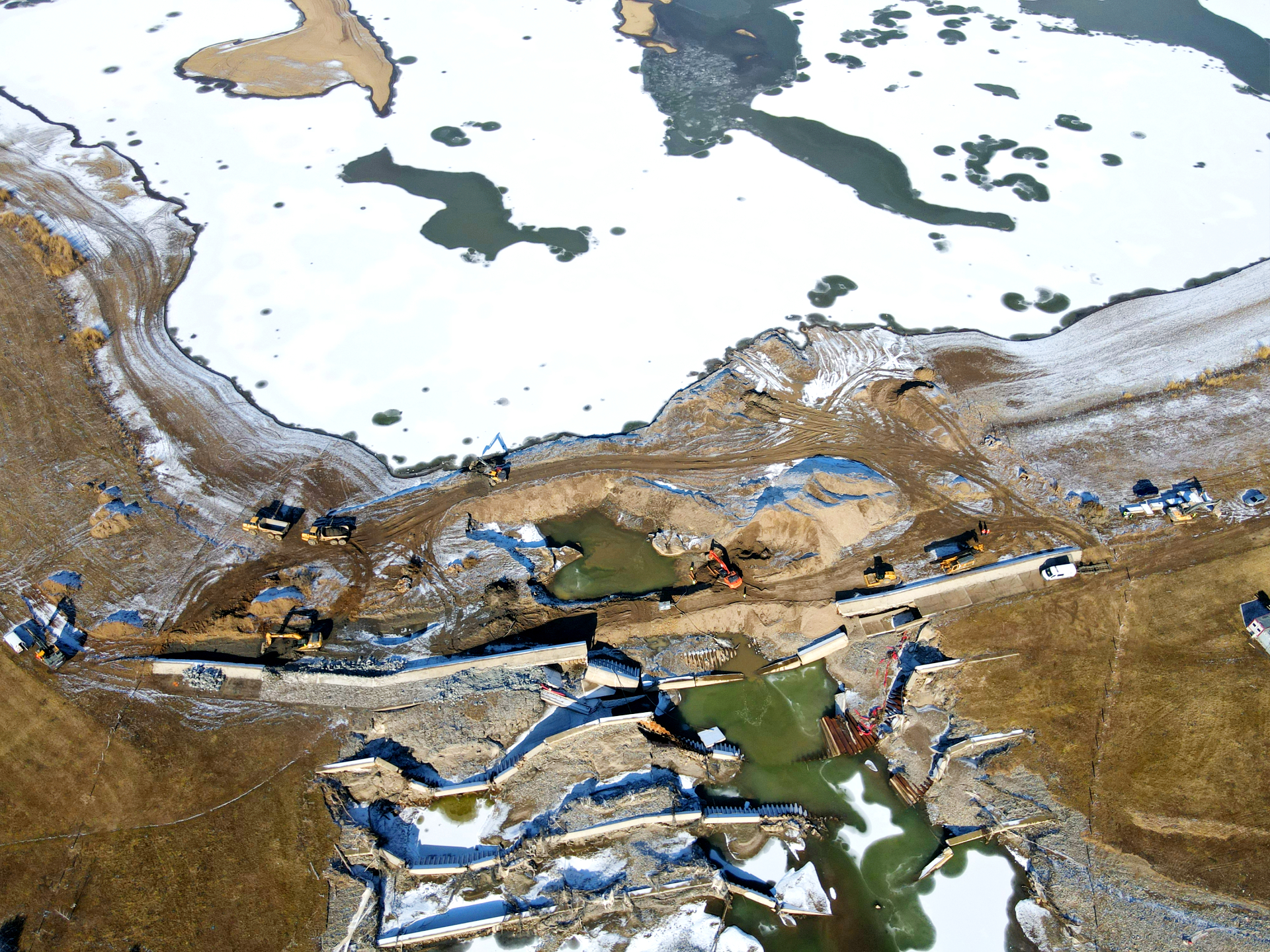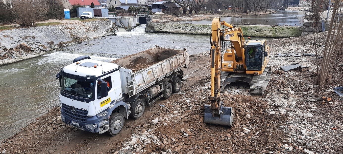 W ramach podjętych działań Wody Polskie opracowały odpowiednią dokumentację techniczną, a następnie w styczniu przystąpiły do realizacji prac przygotowawczych i rozbiórkowych, które właśnie są finalizowane. W ostatnim czasie na placu budowy prowadzono prace związane m.in. z uporządkowaniem terenu, utworzeniem dróg dojazdowych, wykonaniem nasypu pod platformę roboczą, wykonaniem tymczasowej grodzy technologicznej i platformy technologicznej, a także rozbiórką gabionów od strony elektrowni wodnej. W tym tygodniu wykonawca rozpocznie pogrążanie grodzic ścianki szczelnej.