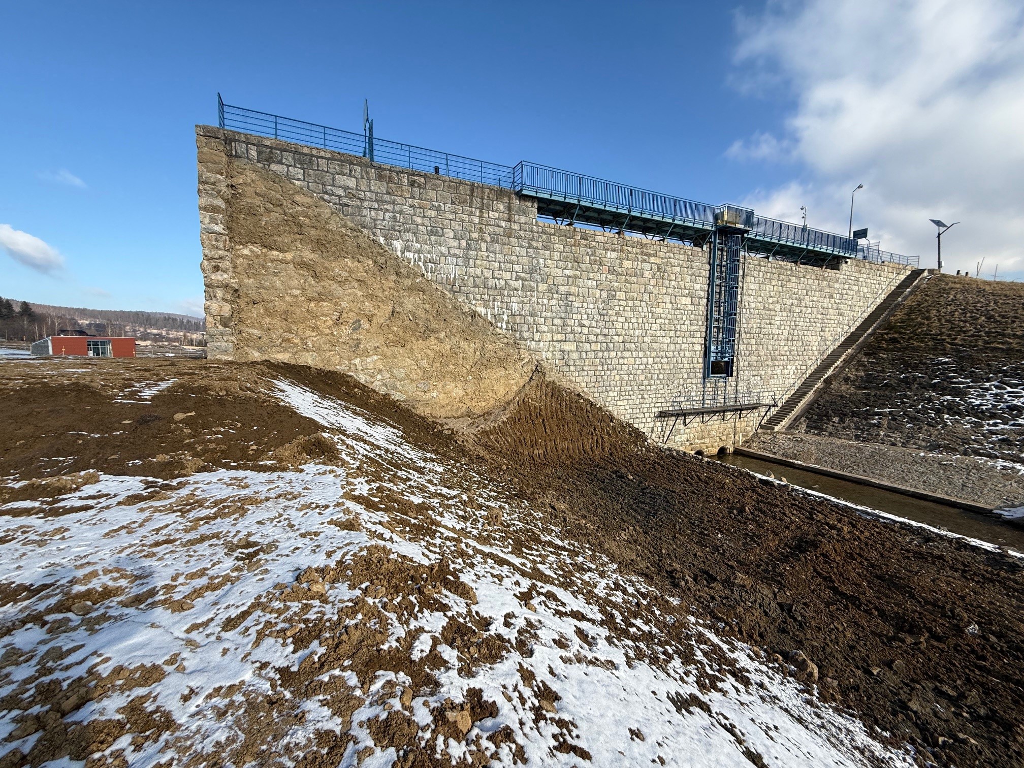 Wykonawca uformuje lewobrzeżną część zapory ziemnej w celu zabezpieczenia budowli przed dalszą degradacją, a także wykona grodzę kamienno-betonową wraz z ubezpieczeniem odsłoniętej części sekcji przelewowej. Wykonawca będzie działać jednocześnie w obszarze zabezpieczania dolnego stanowiska zapory zbiornika przed potencjalnym rozmyciem wodami wezbraniowymi.