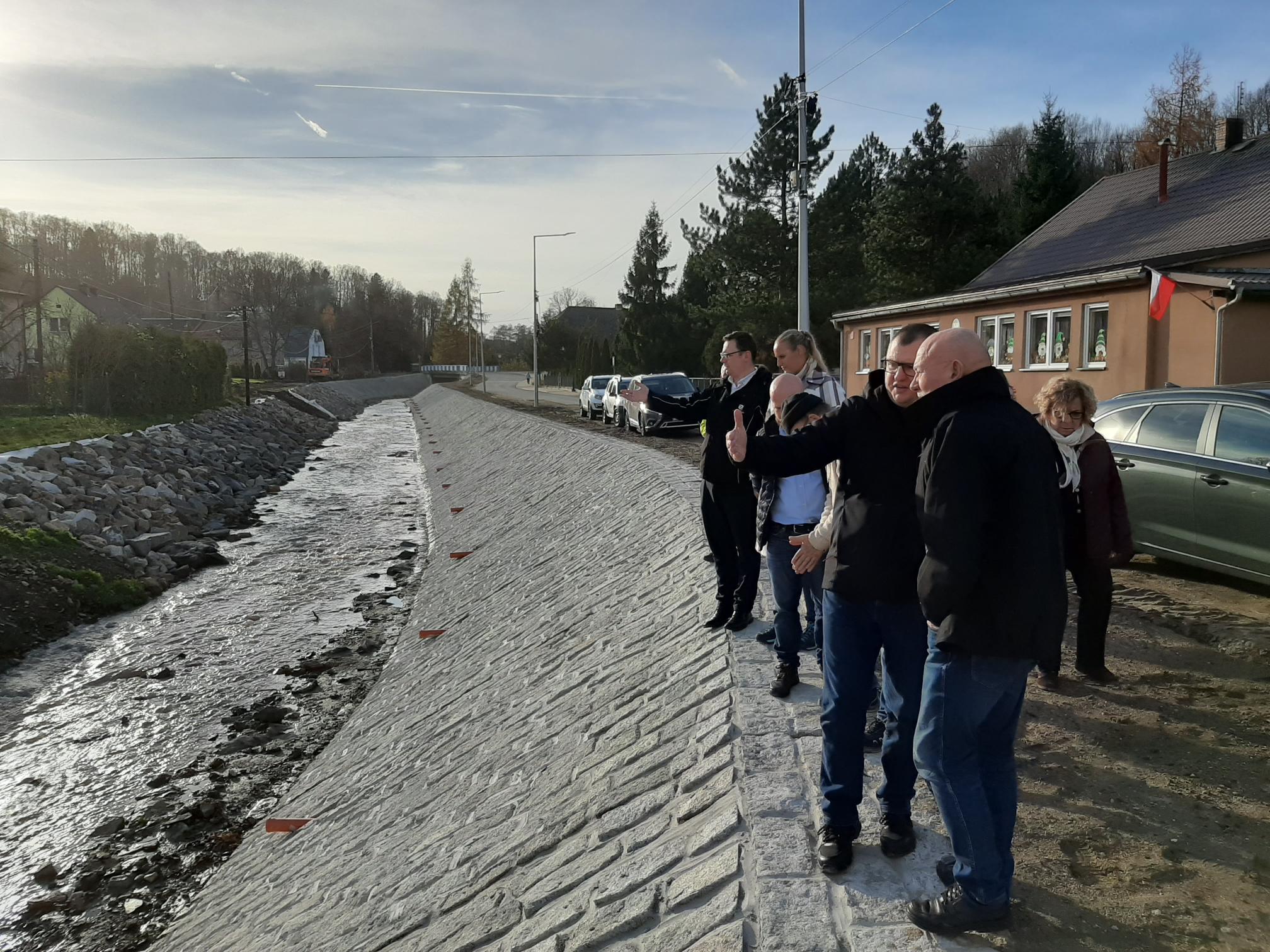 Następnie kierownictwo Wód Polskich udało się na teren niedawno zakończonych prac na kilku dolnośląskich rzekach. W Starym i Nowym Waliszowie w gminie Bystrzyca Kłodzka odtworzono i udrożniono koryto potoku Panna na odcinku blisko 3,5 km. W gminie Kamiennik odtworzono prawie 4-kilometrowy odcinek rzeki Krynka, a w gminie Strzelin – ponad 3 km rzeki Oława. W gminie Świerzawa wykonano naprawę wyrw oraz usunięcie rumoszu w korycie rzeki Bukownica. Łączna wartość tych prac wyniosła niemal 700 tys. zł.
