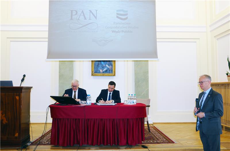 Podpisanie umowy odbyło się podczas drugiego posiedzenia Komitetu Nauk o Wodzie i Gospodarki Wodnej PAN, którego misją jest połączenie środowiska naukowego i ekspertów z instytucji zajmujących się gospodarką wodną, aby wspólnie mogli skuteczniej odpowiadać na wyzwania związane z ochroną przed powodziami i suszami, jakością wód, a także odbudową odporności infrastruktury oraz społeczności.