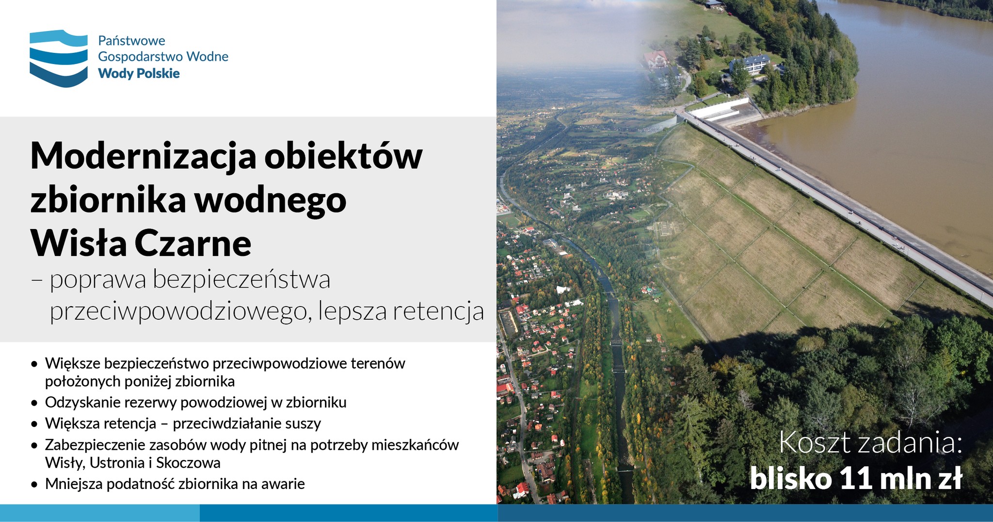 - Zbiornik Wisła Czarne to jeden z kluczowych obiektów, których zadaniem jest wspomaganie gromadzenia wody, a także ochrona przed powodzią mieszkańców Regionu Wodnego Małej Wisły. Obiekt dostarcza wodę pitną do gmin Wisła, Ustroń i Skoczów. Posiada więc duże znaczenie nie tylko dla środowiska, ale również życia mieszkańców. Podjęta modernizacja tego obiektu wpisuje się w priorytetowe działania prowadzone przez Wody Polskie w Gliwicach, których celem jest ochrona przed powodzią i suszą – podkreślił Zastępca Dyrektora RZGW w Gliwicach Jan Grygier.