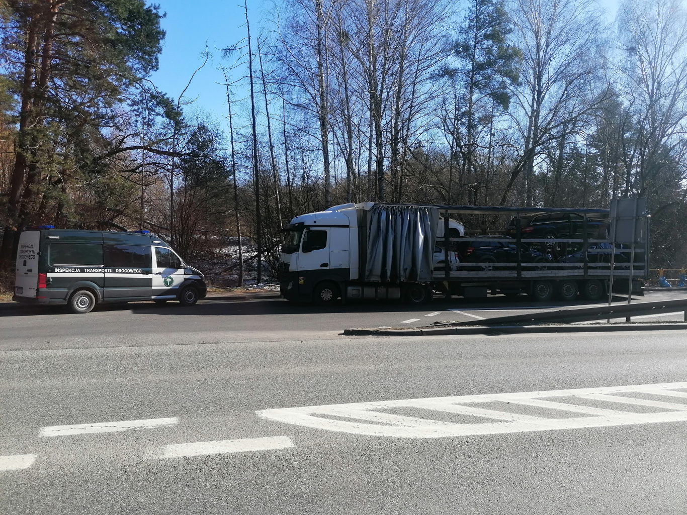 Podczas kontroli inspektorzy stwierdzili, że dane w okazanych przez kierowcę dokumentach przewozowych nie zgadzają się ze stanem faktycznym. Przewożone auta figurowały w dokumentach jako karoserie, silniki i części. Przy udziale funkcjonariuszy Straży Granicznej oraz Policji kontrolujący potwierdzili legalność przewożonego ładunku. Dodatkowo okazało się, że kierujący dwa razy skrócił wymagany odpoczynek dzienny – o 1 godzinę i 30 minut oraz 5 godzin i 52 minuty. Ponadto kierowca źle zabezpieczył transportowane samochody. Dwa auta ustawiono na stojakach, które nie były przymocowane do podłogi, a pasy mocujące były poluzowane i uszkodzone. Nie mogły być one używane do zabezpieczenia ładunku.