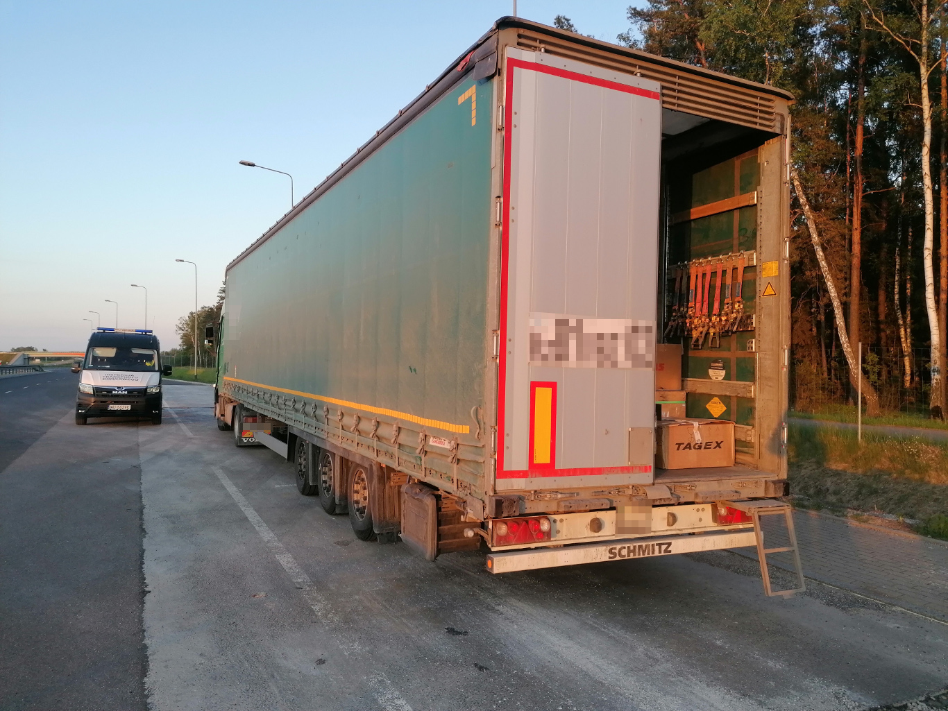 Do czasu opłacenia kaucji w wysokości 12 000 zł oraz okazania prawidłowego zezwolenia ciężarówkę usunięto na parking strzeżony.