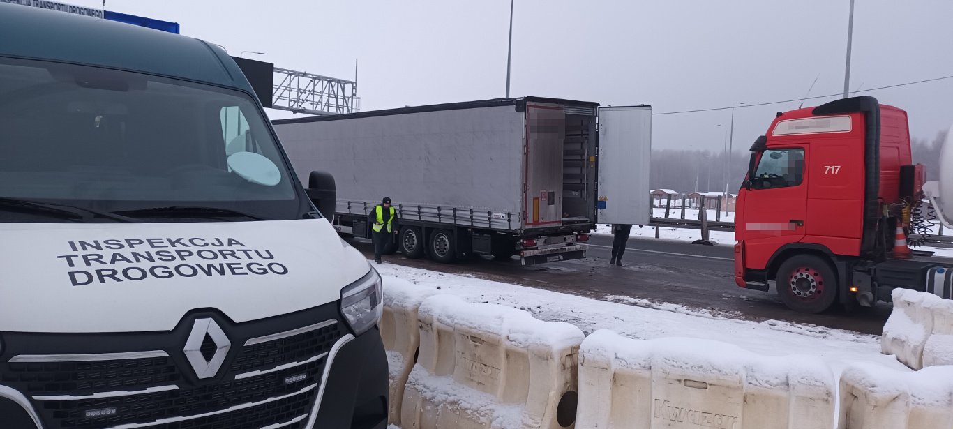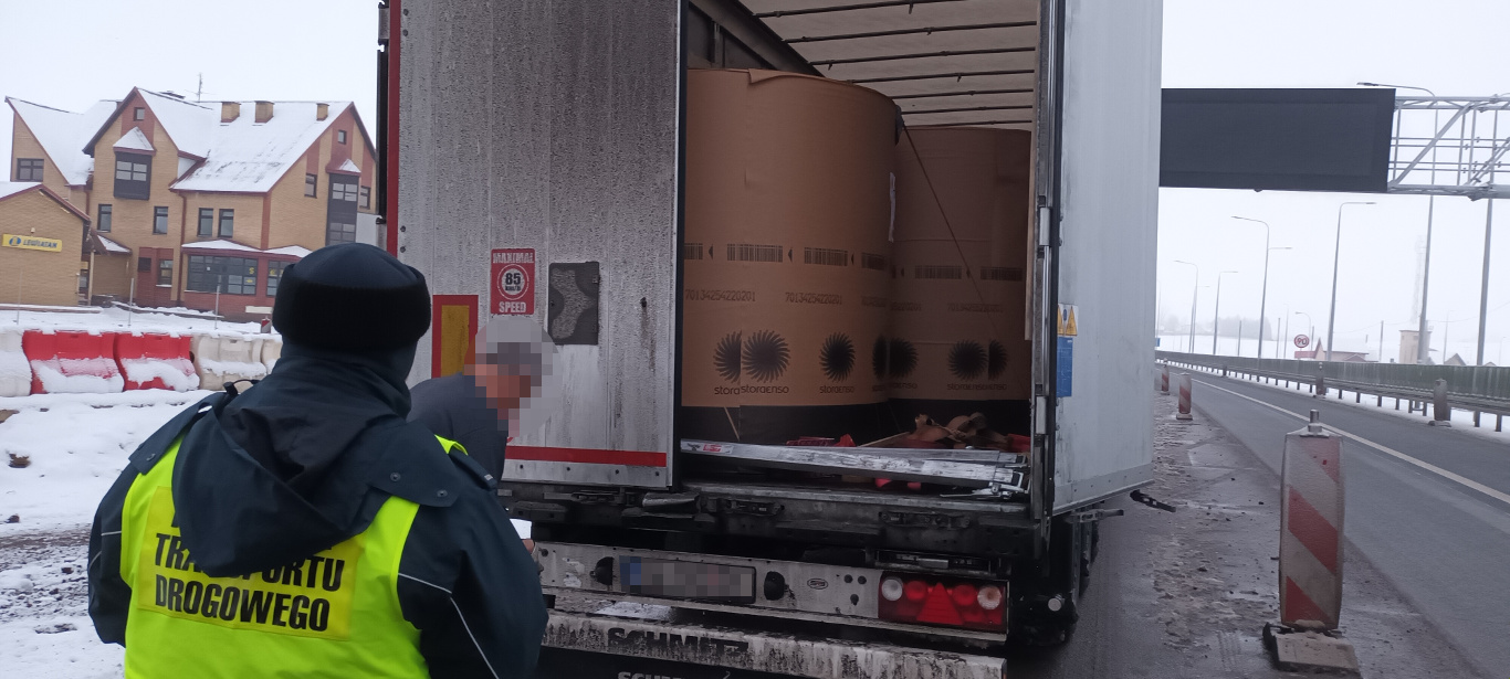 Kierowca przekazany funkcjonariuszom Policji i ciężarówka usunięta na parking strzeżony to wynik kontroli przeprowadzonej przez inspektorów z Wojewódzkiego Inspektoratu Transportu Drogowego w Białymstoku i Głównego Inspektoratu Transportu Drogowego.