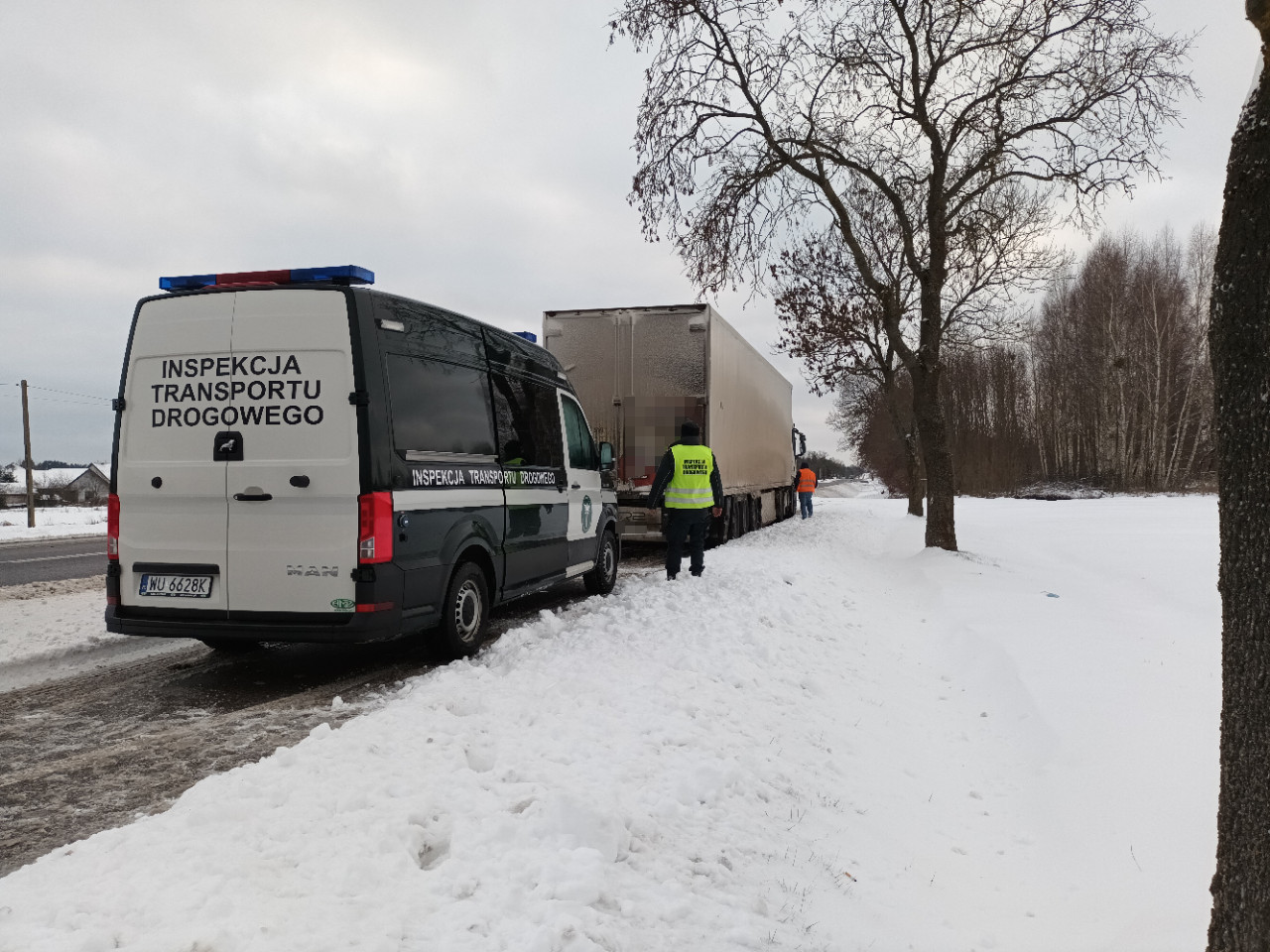 Inspektorzy z Delegatury Północno – Wschodniej w Białymstoku realizując działania patrolowo – kontrolne na drodze do przejścia granicznego z Białorusią zatrzymali do kontroli ciągnik siodłowy z naczepą prowadzony przez załogę dwuosobową. Wstępne rozeznanie wskazało na poważne nieprawidłowości w obsłudze tachografu. Na miejsce zostali zadysponowani inspektorzy Wojewódzkiego Inspektoratu Transportu Drogowego w Białymstoku do przeprowadzenia szczegółowej kontroli.