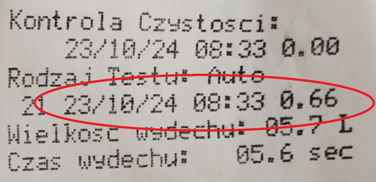 Kontroli przy użyciu urządzenia AlcoBlow poddano łącznie 34 kierowców na zawartość alkoholu w wydychanym powietrzu. W jednym przypadku uzyskano wynik wskazujący na kierowanie pod wpływem alkoholu. Wezwani na miejsce kontroli funkcjonariusze KMP w Łomży wykonali dalsze czynności procesowe. Dwa kolejne badania na urządzeniu numerycznym AlcoSensor potwierdziły obecność alkoholu w organizmie kierowcy w ilości 0,66 oraz 0,62 mg/litr wydychanego powietrza, co odpowiada 1,39 ‰ i 1,3 ‰ we krwi.