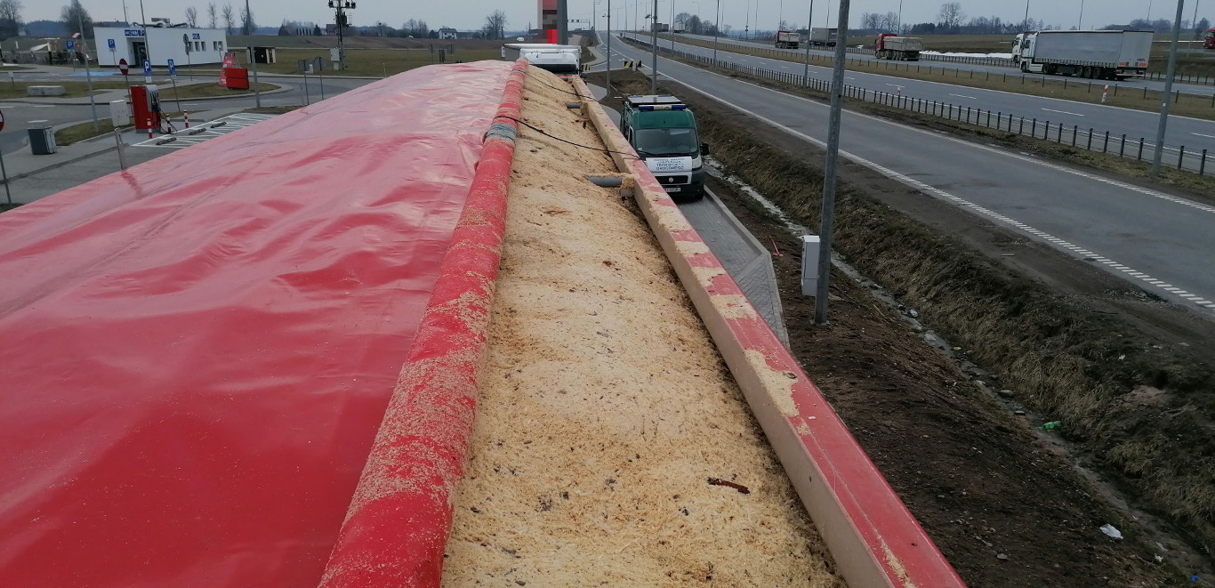 Ciężarówką załadowaną w powiecie łomżyńskim przewożone były wióry do odbiorcy w Suwałkach. Przedsiębiorca ładując pojazd nie zważał na ograniczenia prawne określające dopuszczalne masy i naciski osi pojazdów. Jedynym parametrem określającym ilość przewożonego ładunku była wysokość burt naczepy.