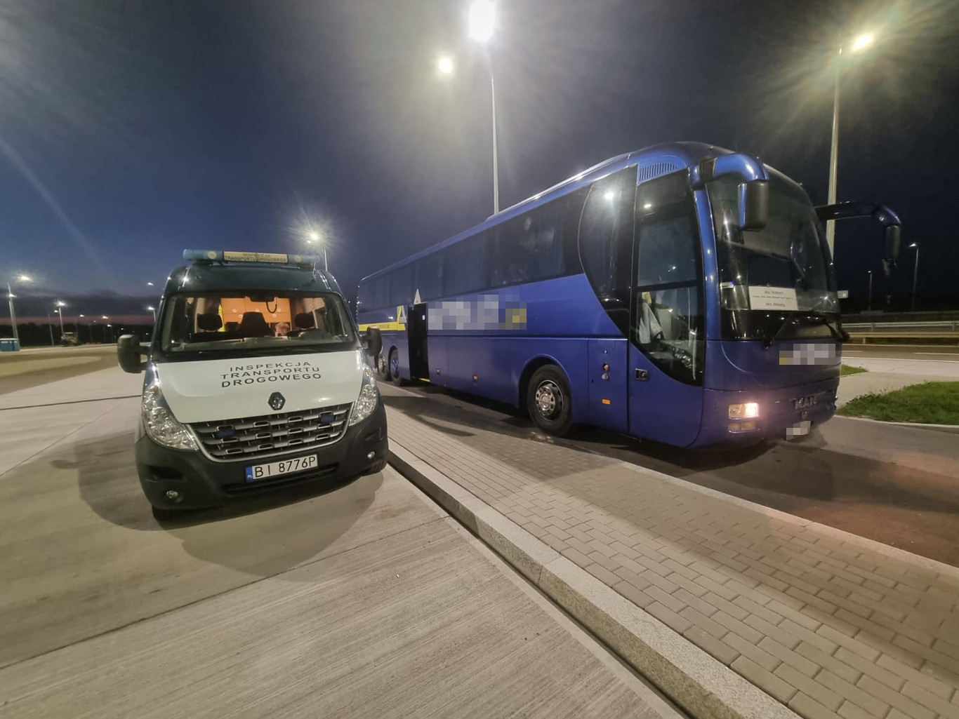 Podczas kontroli autobusów w regularnym ruchu międzynarodowym inspektorzy z Wojewódzkiego Inspektoratu Transportu Drogowego w Białymstoku stwierdzili naruszenia skutkujące nałożeniem kar finansowych oraz zatrzymaniem prawa jazdy kierowcy.