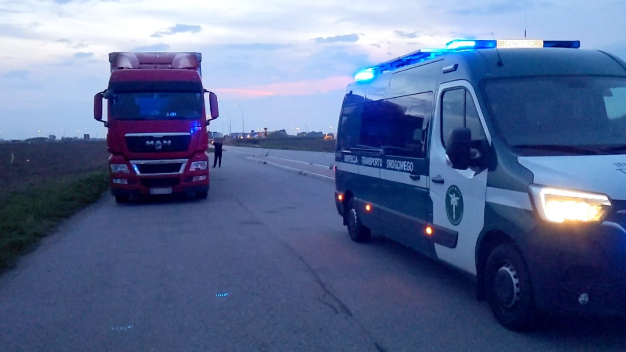 Wczoraj 11 października br. podczas przejazdu po drodze ekspresowej S61 uwagę inspektorów z suwalskiego oddziału Wojewódzkiego Inspektoratu Transportu Drogowego w Białymstoku przyciągnął zestaw ciężarowy, w którym naczepa była nienaturalnie mocno pochylona na prawą stronę.