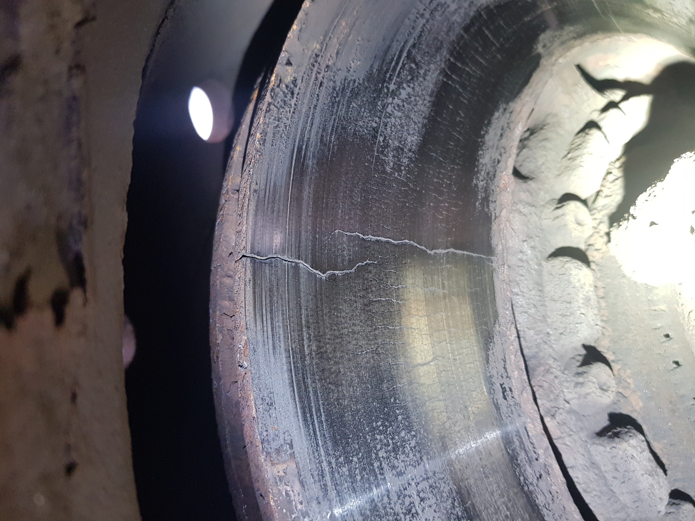 Dodatkowo na drugiej osi z lewej strony naczepy ujawniono pękniętą tarczę hamulcową.