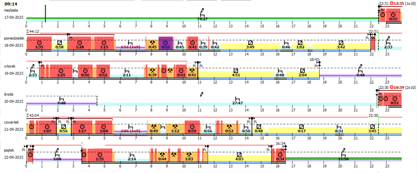 - przekroczenie dopuszczalnego czasu jazdy dziennej o 3 godziny i 22 minuty.