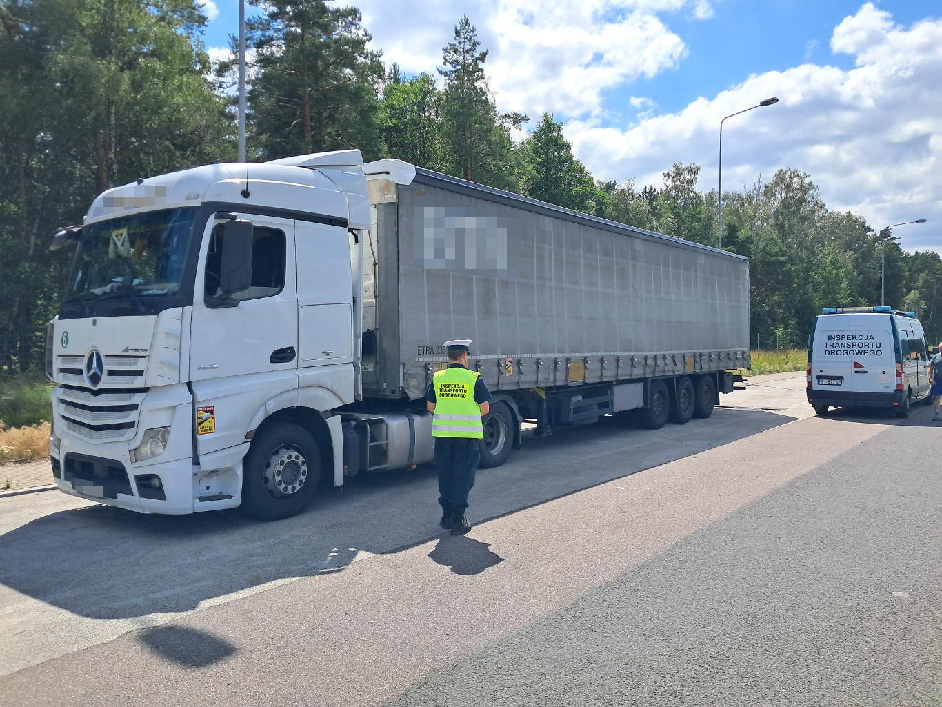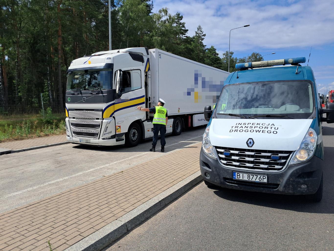 Inspektorzy z Wojewódzkiego Inspektoratu Transportu Drogowego w Białymstoku sprawdzili wagę ciężarówki należącej do portugalskiego przewoźnika. W naczepie przewożone były owoce i warzywa na trasie z Hiszpanii do Litwy. Podczas ważenia okazało się, że dopuszczalna masa zestawu tj. 40 ton została przekroczona o 2,6 tony. Dodatkowo kontrolujący stwierdzili za duży o 1 900 kilogramów nacisk osi napędowej, który wyniósł 13,4 tony. Zgodnie z obowiązującym prawem mógł on wynosić nie więcej niż 11,5 tony. Ponadto jeden z kierowców, z podwójnej obsady, nie okazał do kontroli wymaganego ważnego świadectwa kierowcy.