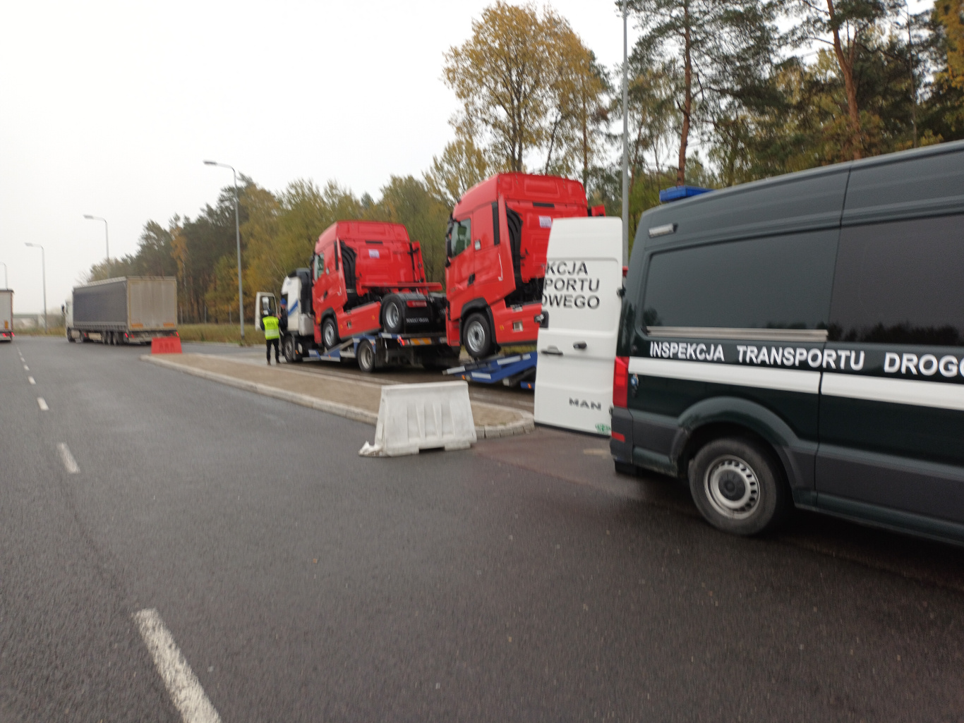 Wczoraj 26 października 2023r. na drodze krajowej S8 w pobliżu miejscowości Jeżewo inspektorzy z Wojewódzkiego Inspektoratu Transportu Drogowego w Białymstoku zatrzymali do kontroli ciężarówkę, którą przewożone były dwa ciągniki siodłowe na trasie z Polski do Estonii.